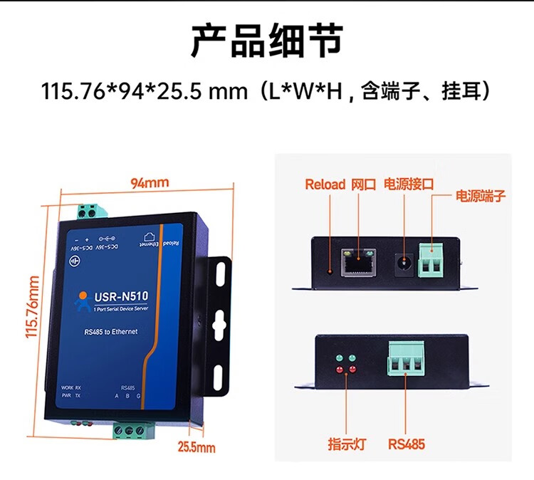Human Internet of Things single serial port server serial port to Ethernet port two-way transparent transmission edge computing remote management USR-N510-H7