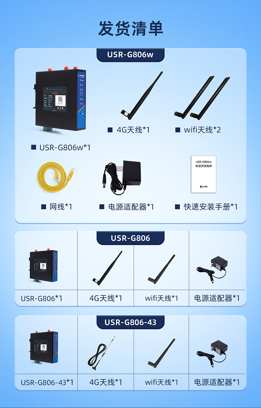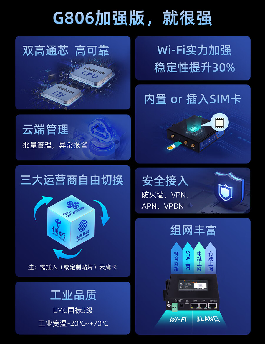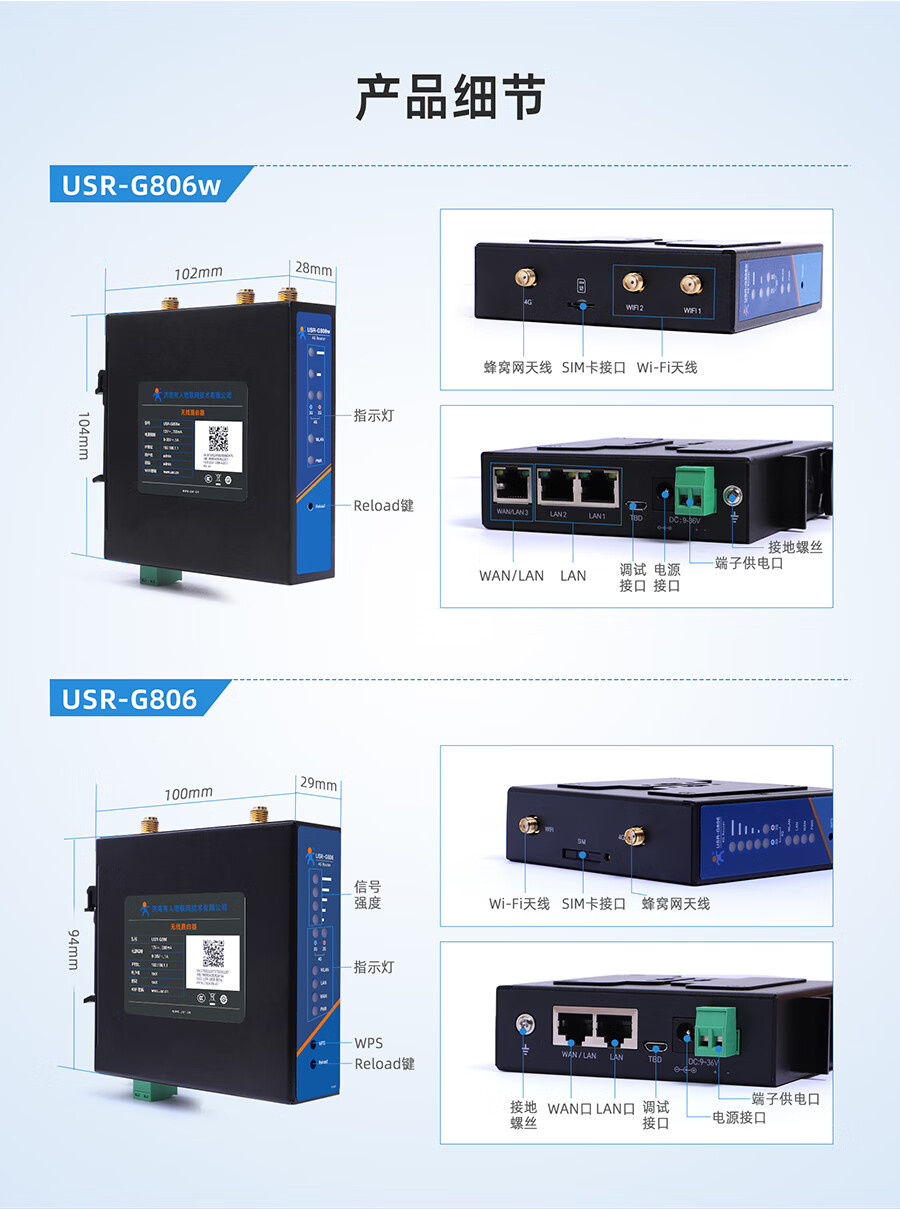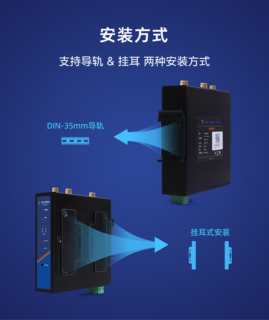 There are Internet of Things wifi enhanced version 4G industrial router dual Qualcomm built-in or plug-in card SIM card cloud management USR-G806w-43