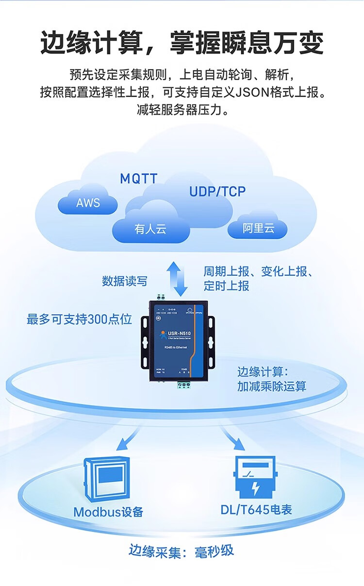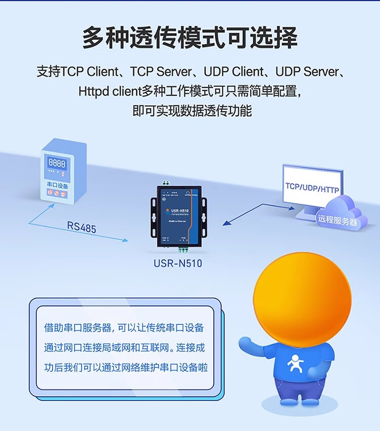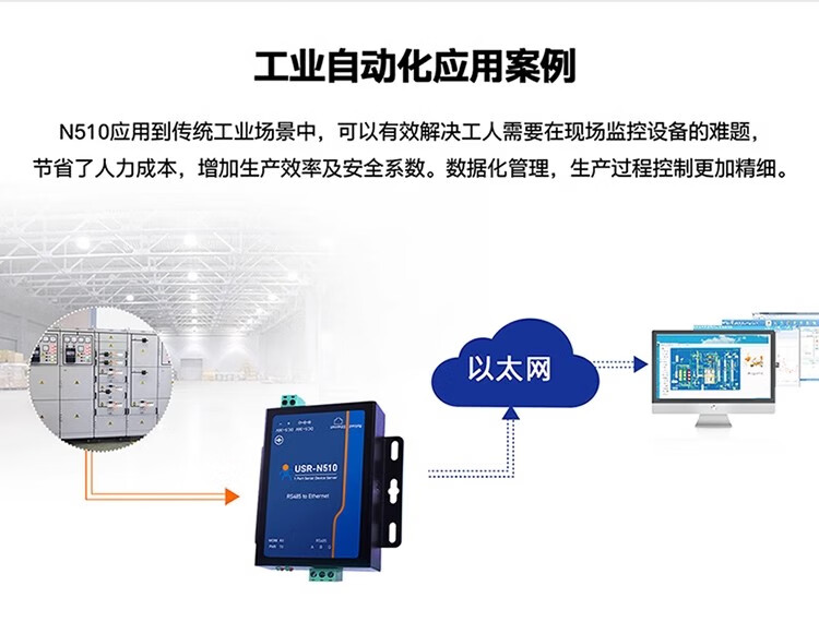 Renmin Internet of Things RS485 single serial port server serial port to Ethernet port two-way transparent transmission edge computing remote management USR-N510-H7-4