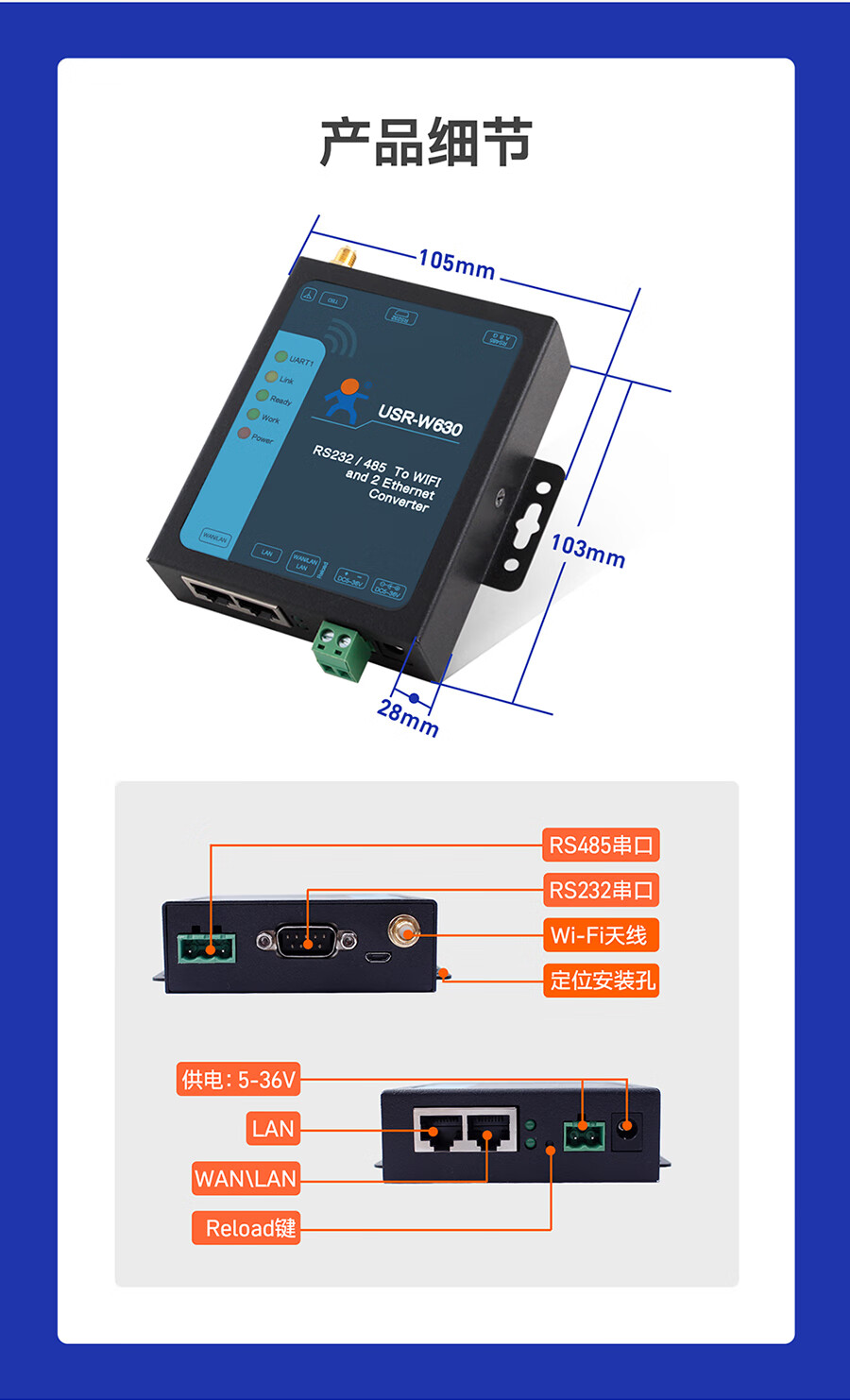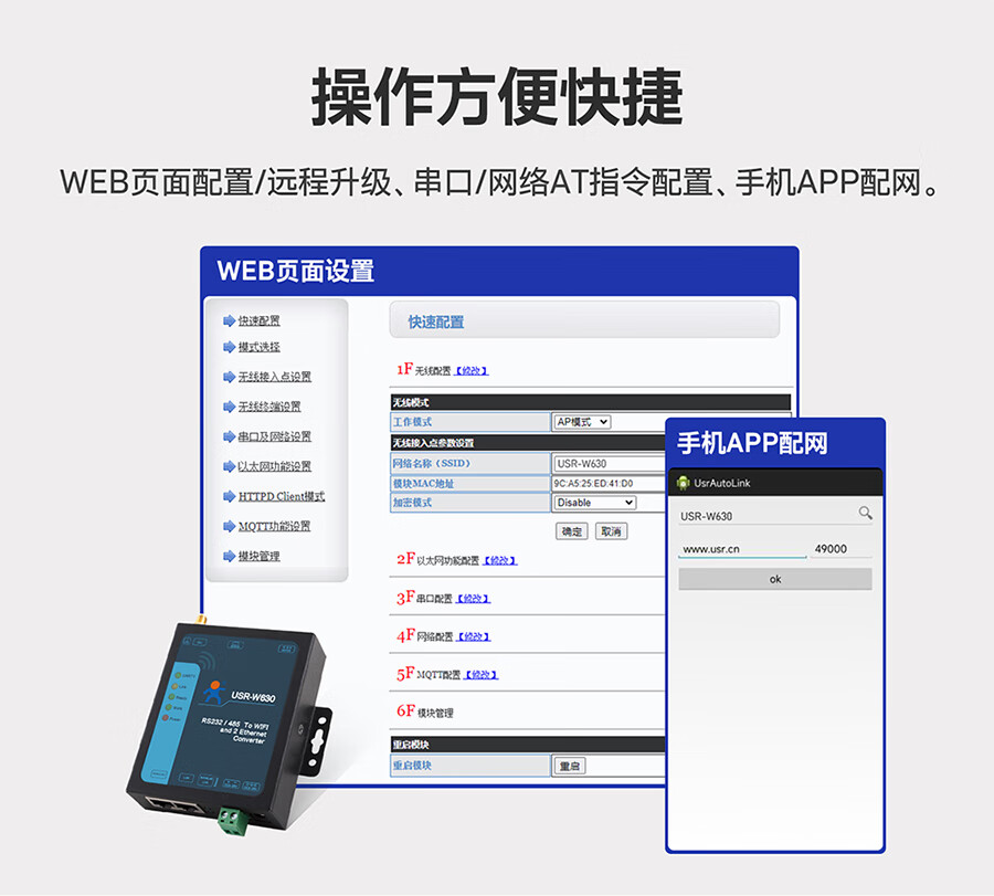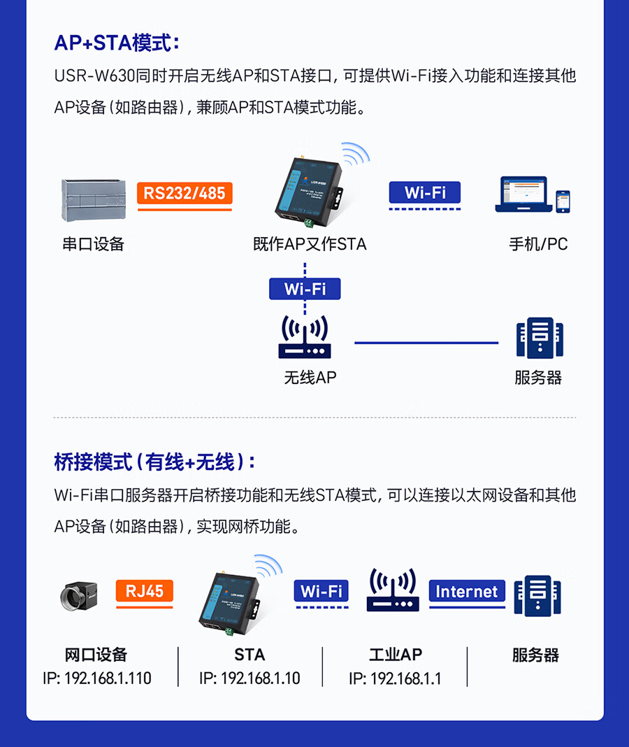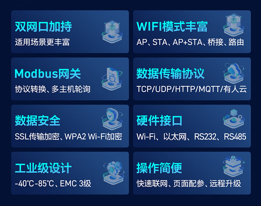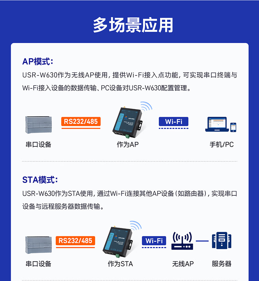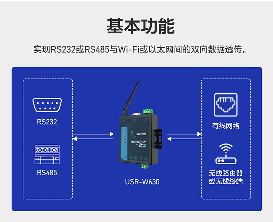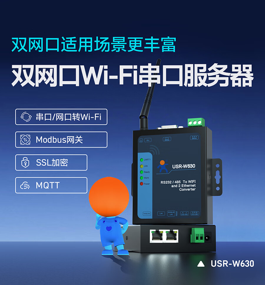 Renmin Internet of Things dual network port Wi-Fi serial port server multi-interface MODBUS gateway two-way data transmission USR-W630