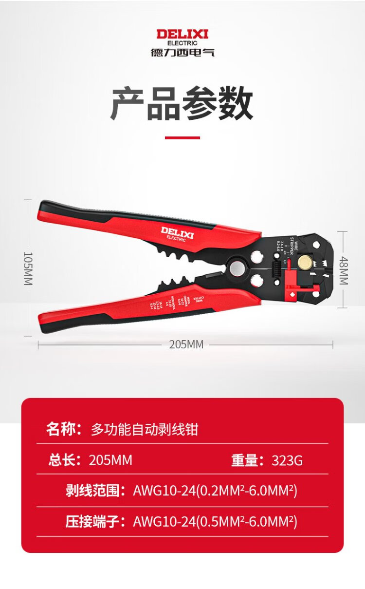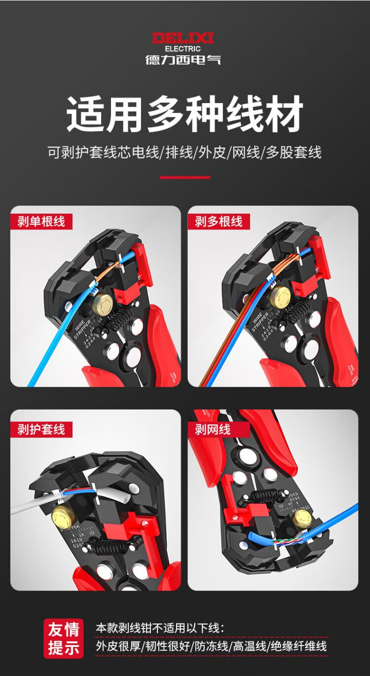 Delixi electrician multifunctional wire stripper automatic wire puller terminal crimping crimping pliers fiber optic cable stripping pliers