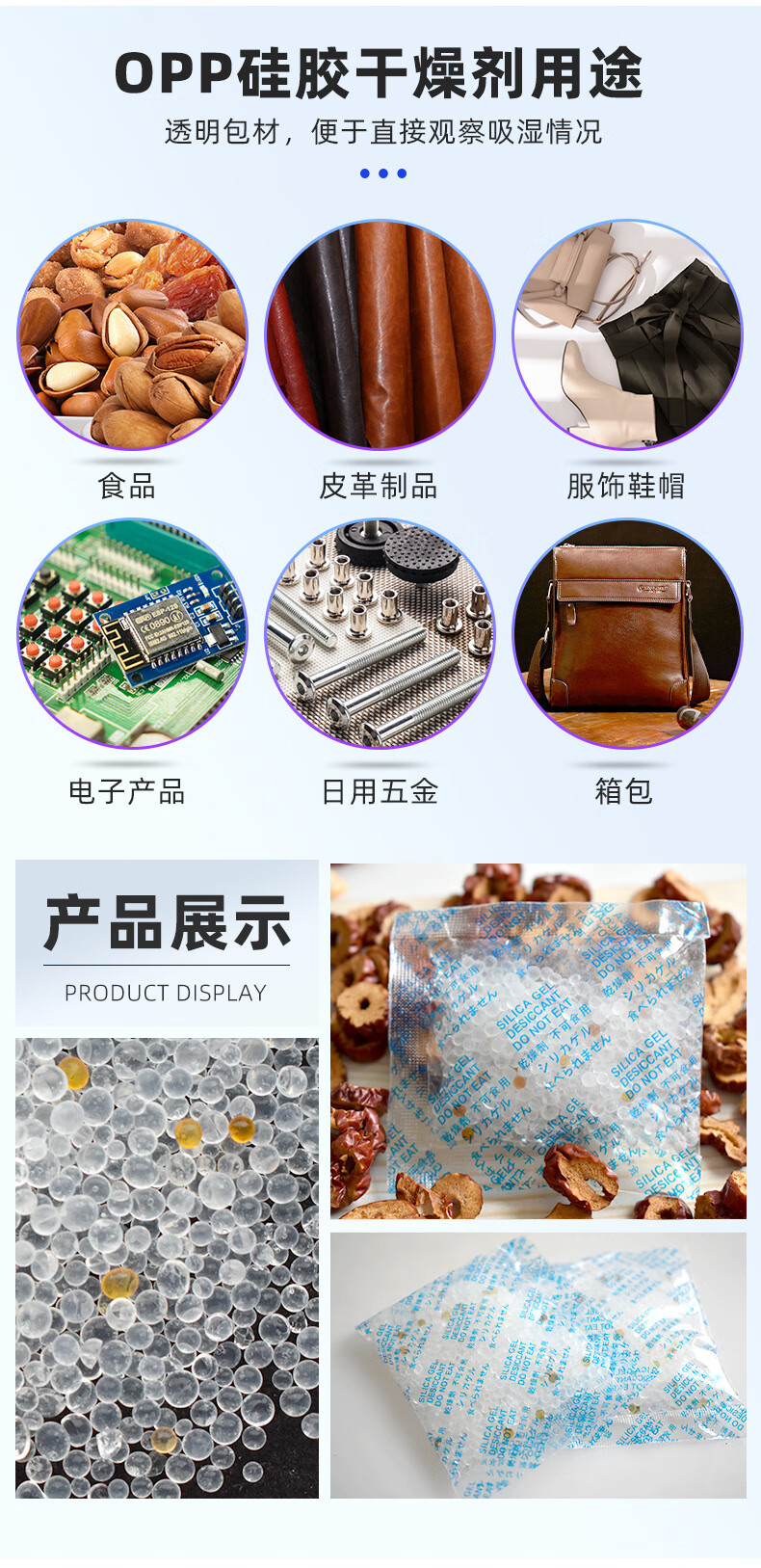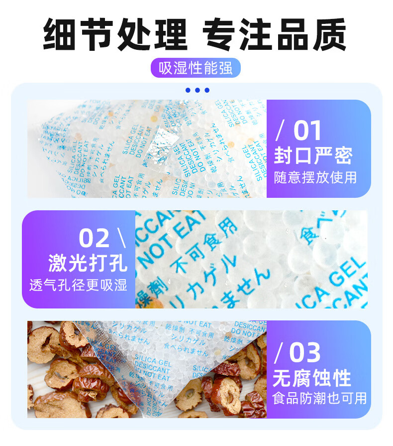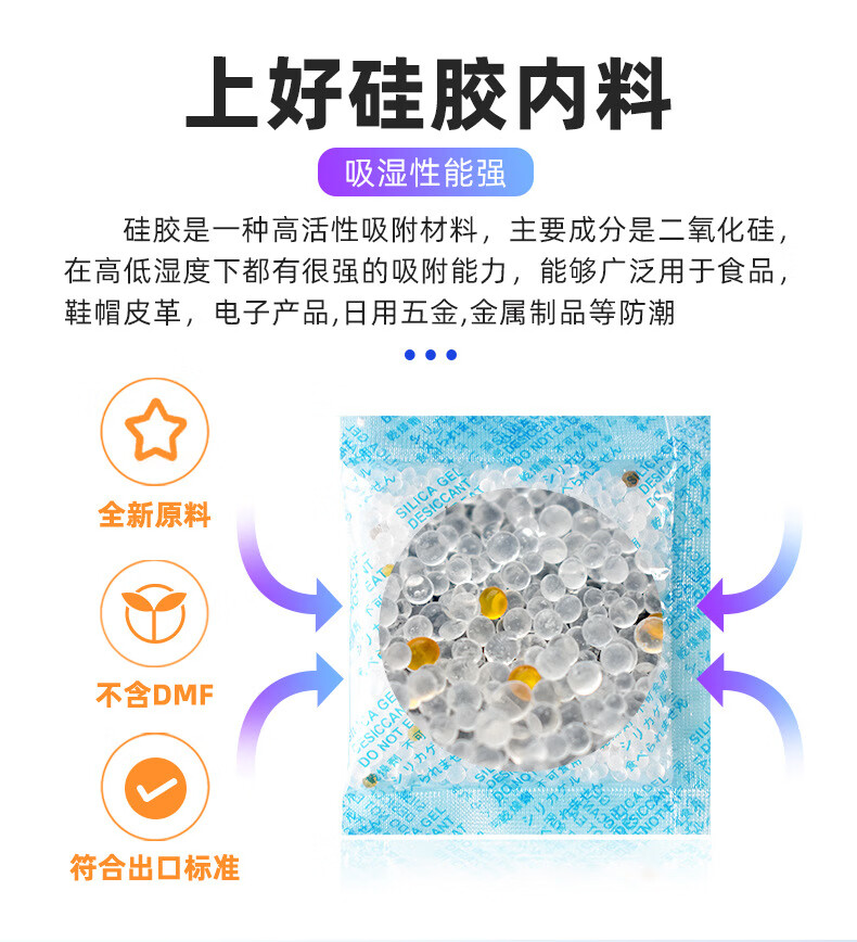 Andatong food desiccant industrial silica gel moisture-proof beads camera machinery tea medicine cat food dehumidifier large bag reusable 500g 10g 50 bags