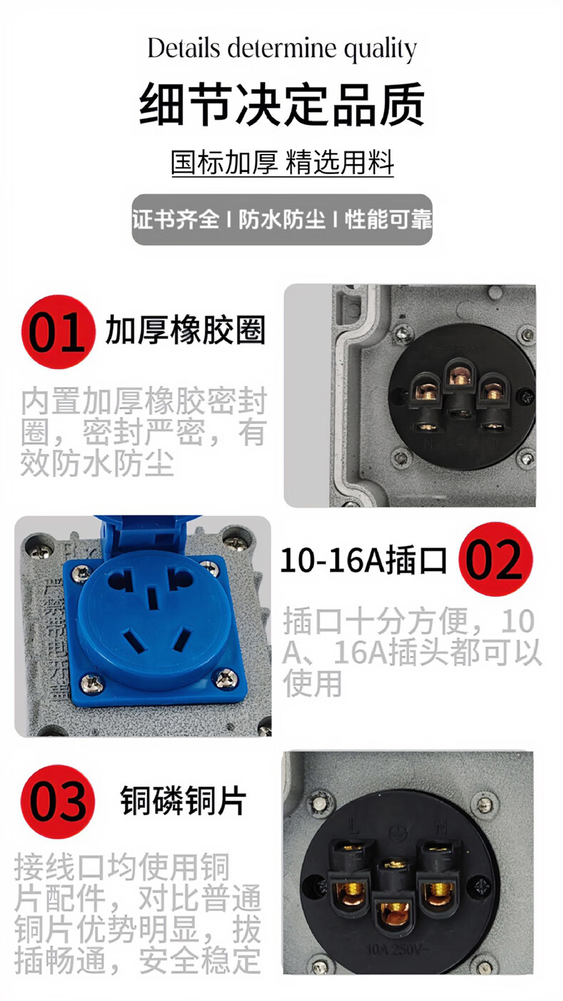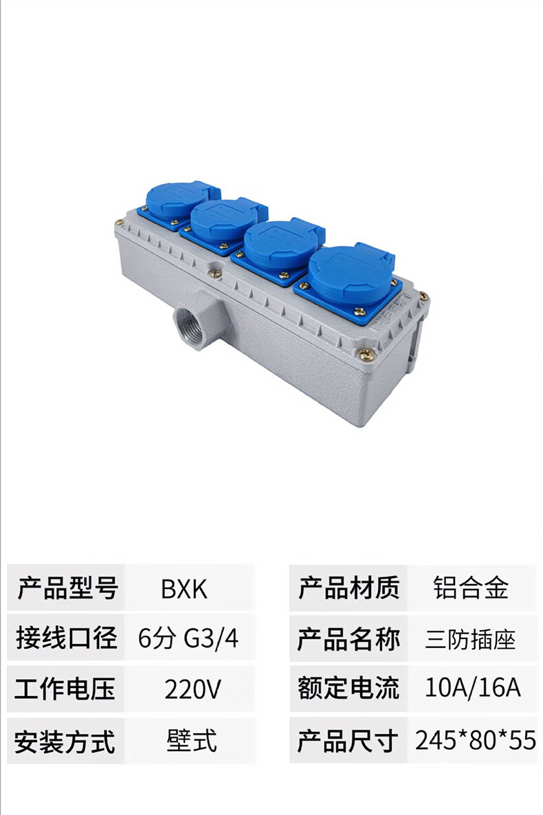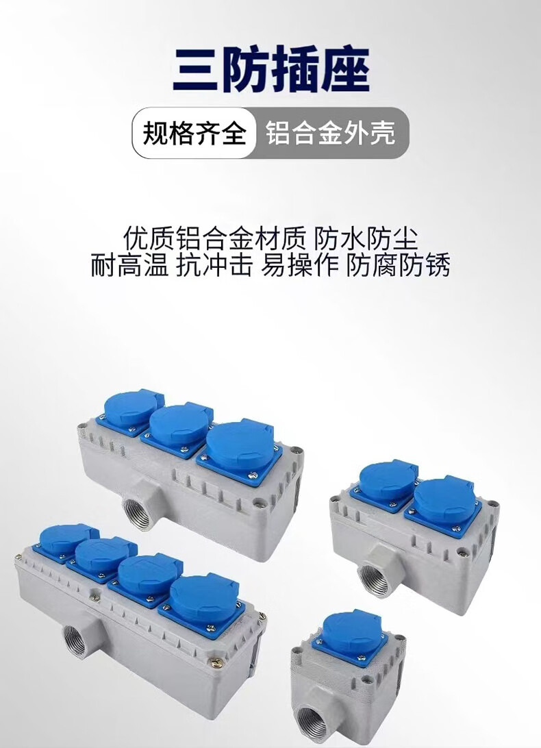 Tianshili surface-mounted indoor and outdoor cast aluminum three-proof plug-in industrial waterproof socket 220V non-explosion-proof socket five-hole one-link socket
