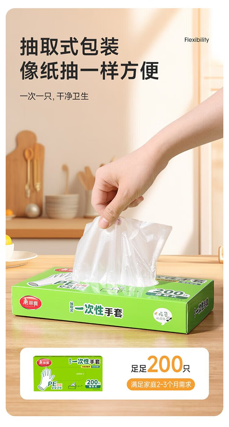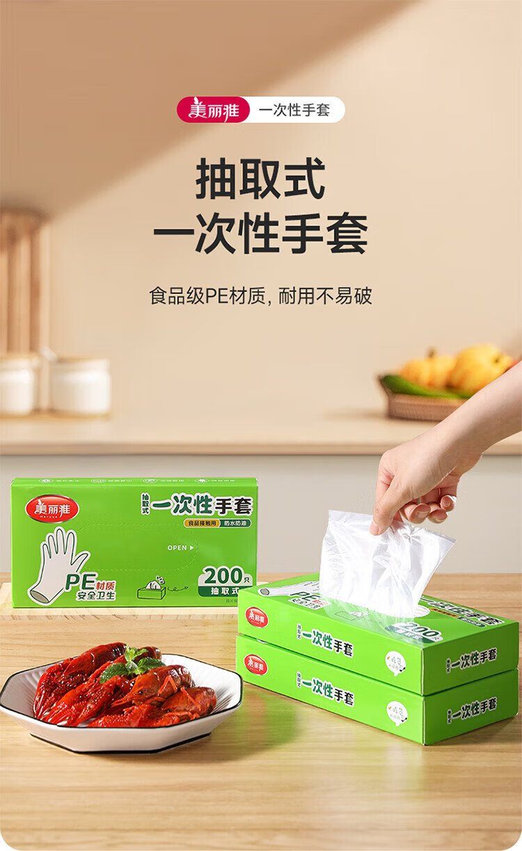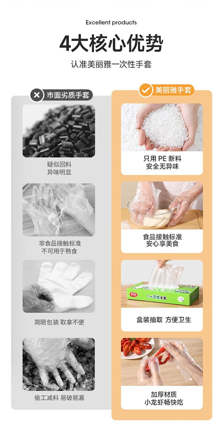 Meiya Disposable Food Gloves Upgraded Thickening 200 Boxed Extract PE Gloves Kitchen Dining Housework