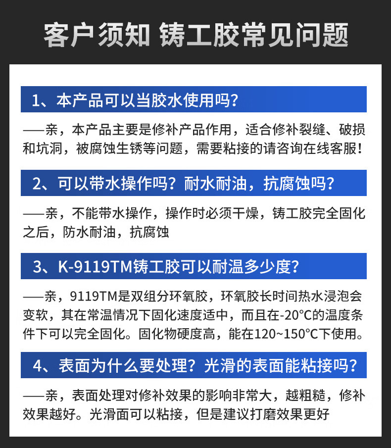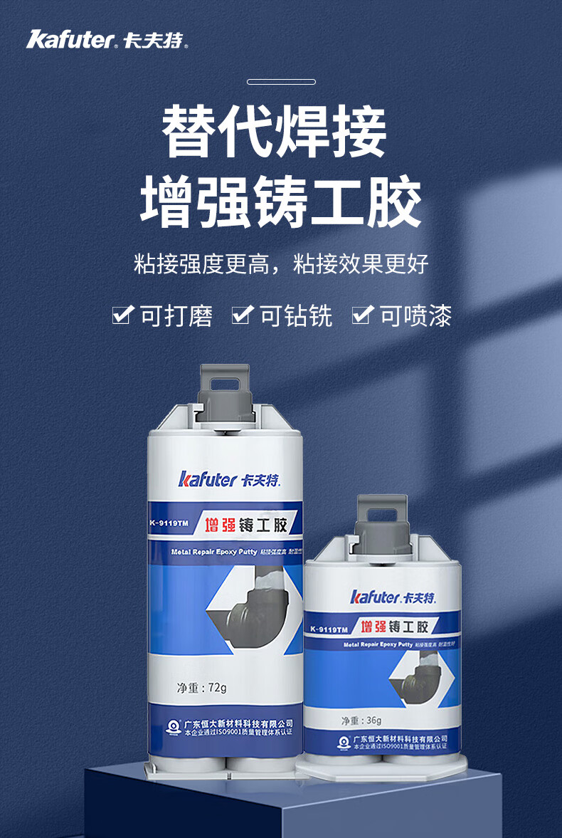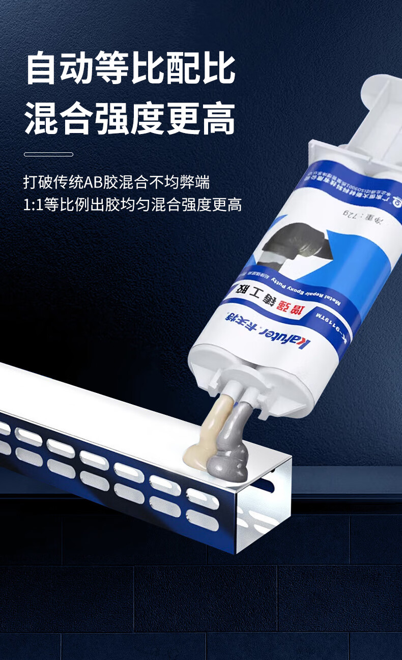 Kafter strong caster's glue K-9119TM high temperature resistant AB glue structural glue metal sand hole crack defect repair radiator leak repair gray 72g