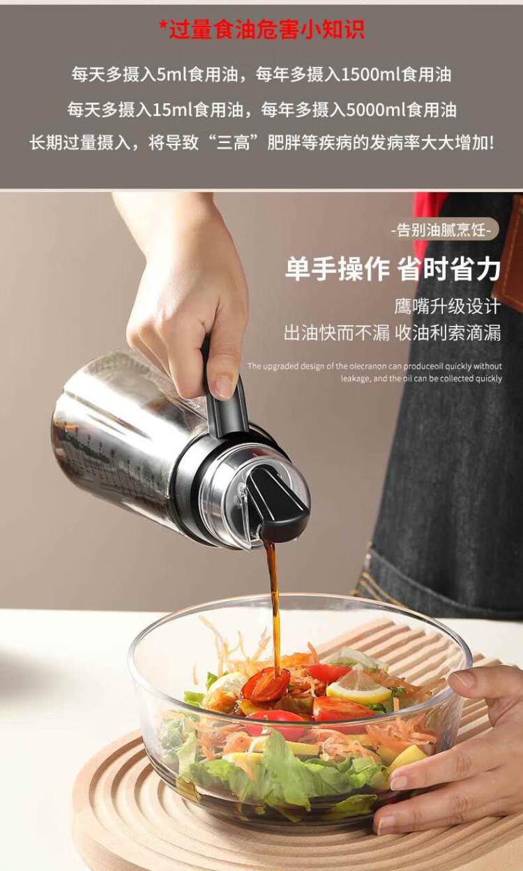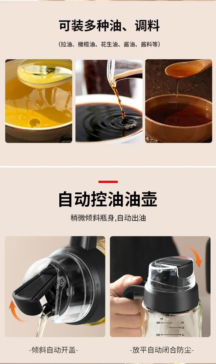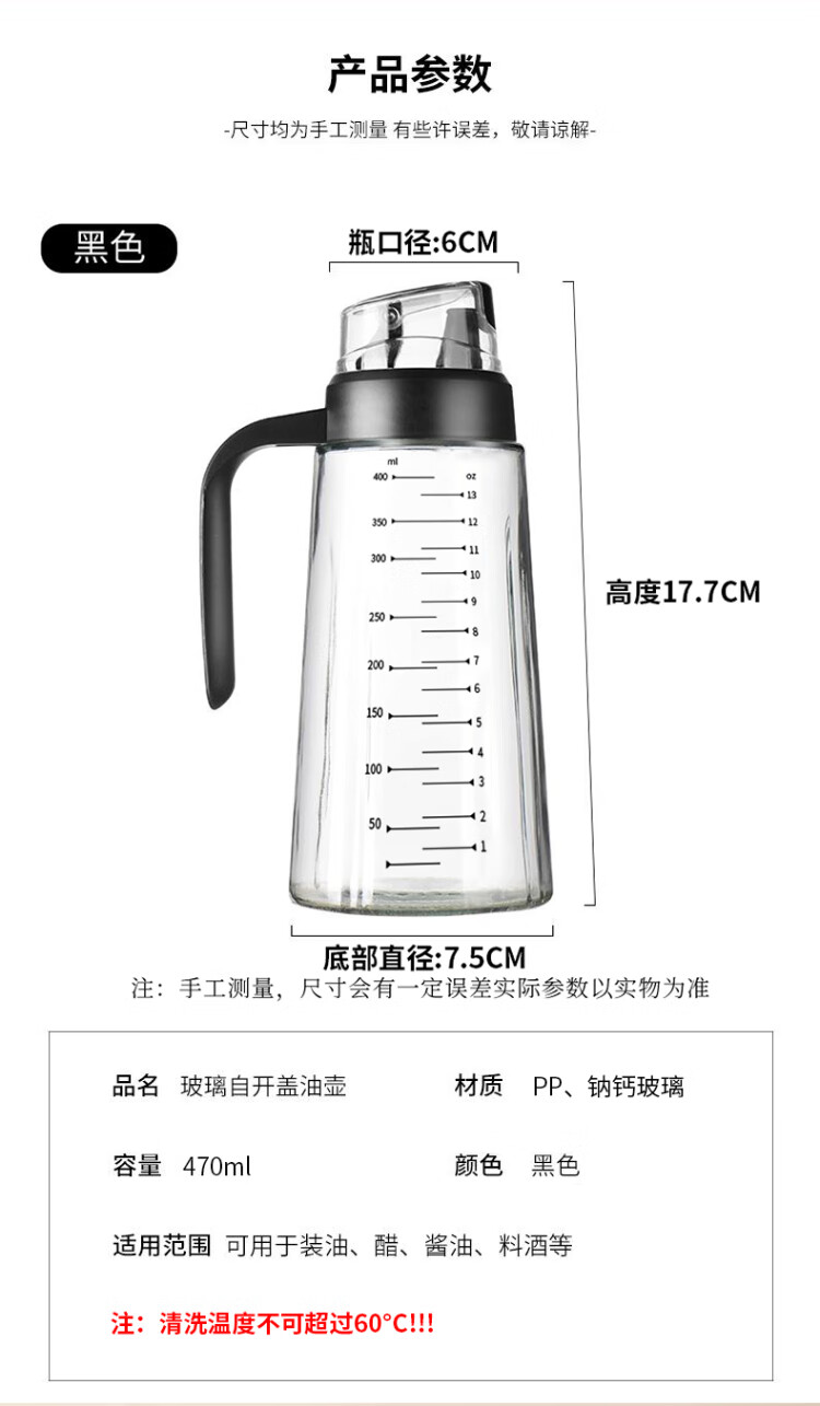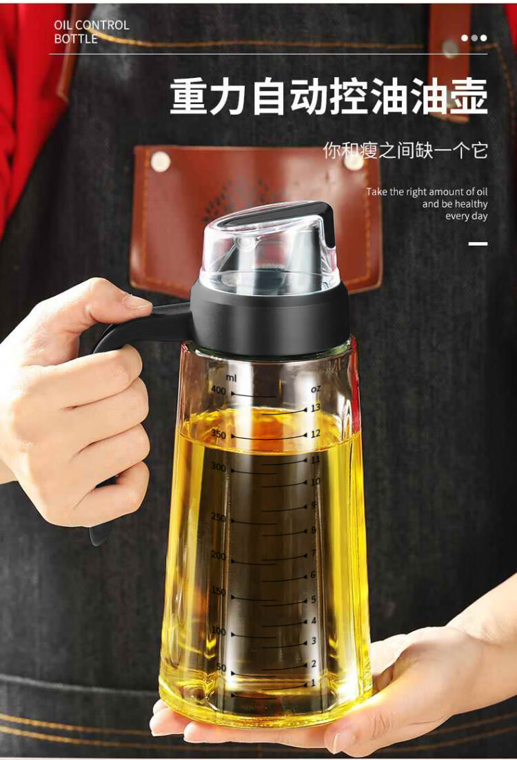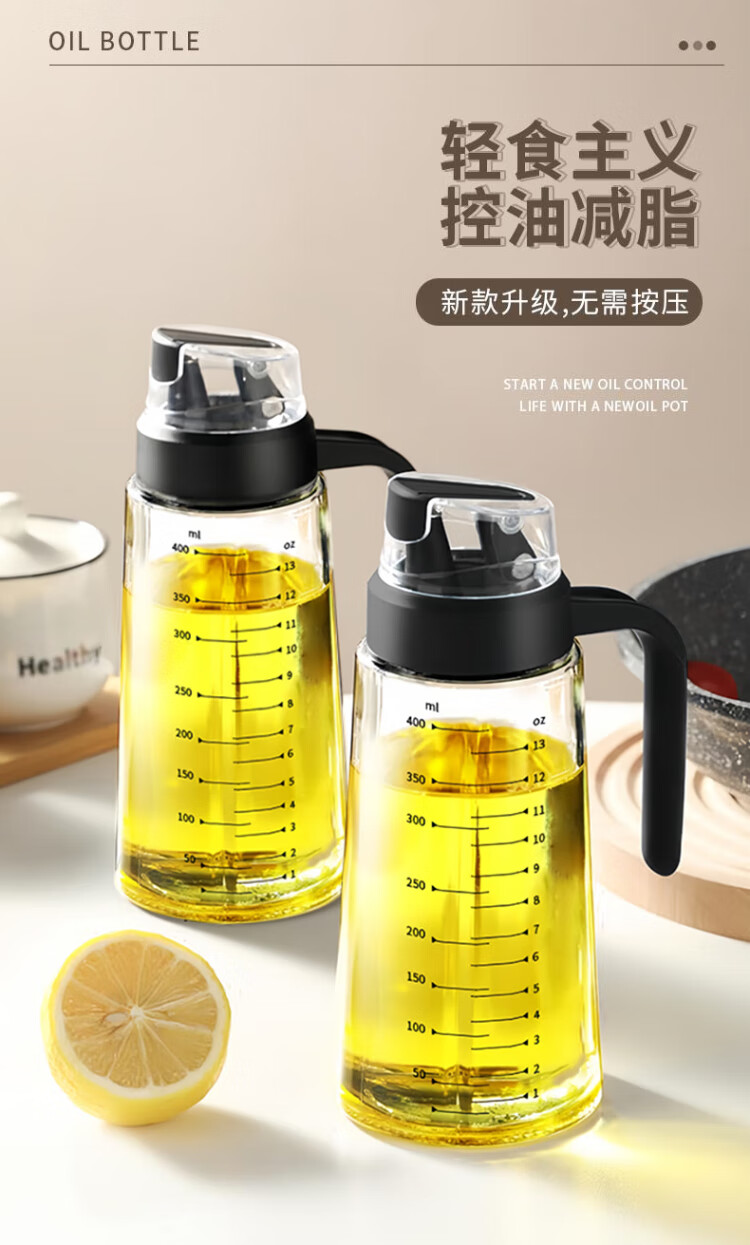 Mengting (MENGTING) automatic opening and closing oil pot kitchen glass pouring oil bottle soy sauce vinegar pot seasoning bottle seasoning bottle oil tank 470ML