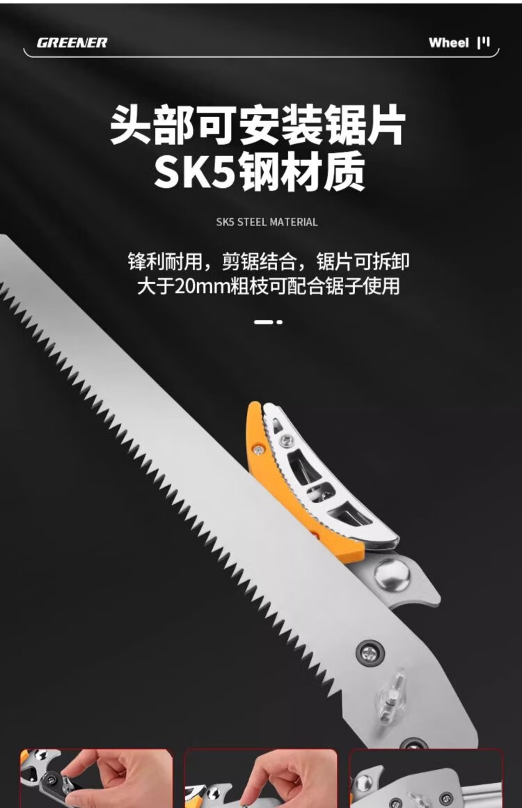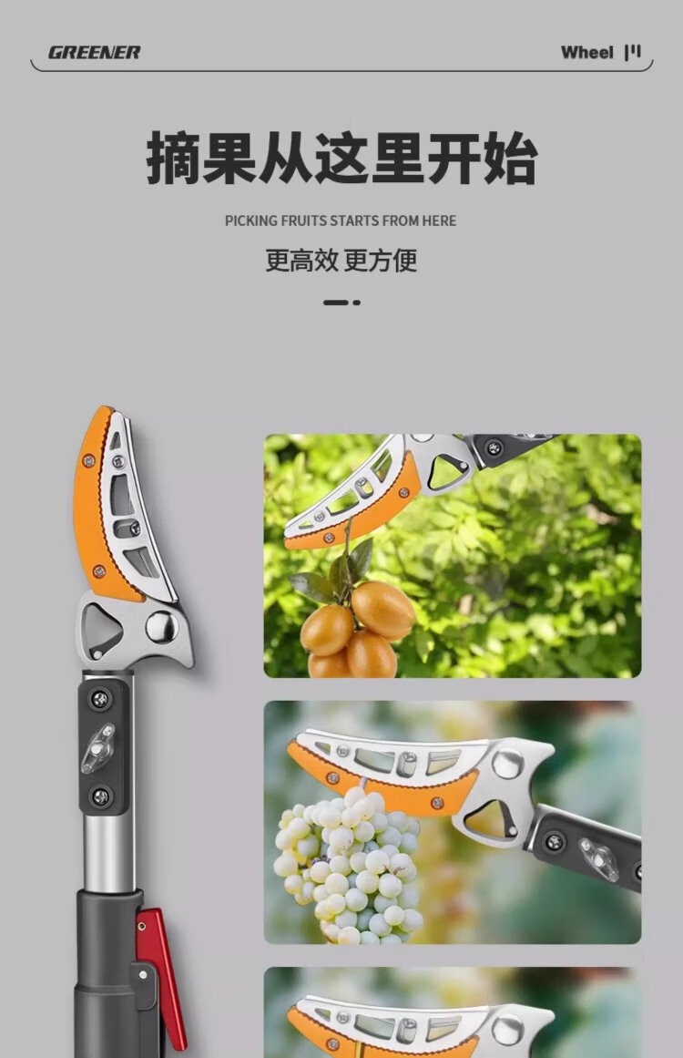 GREENER fruit picking artifact pruning shears telescopic high-altitude fruit picking household 1.8-3 meters two-section telescopic 3-piece set