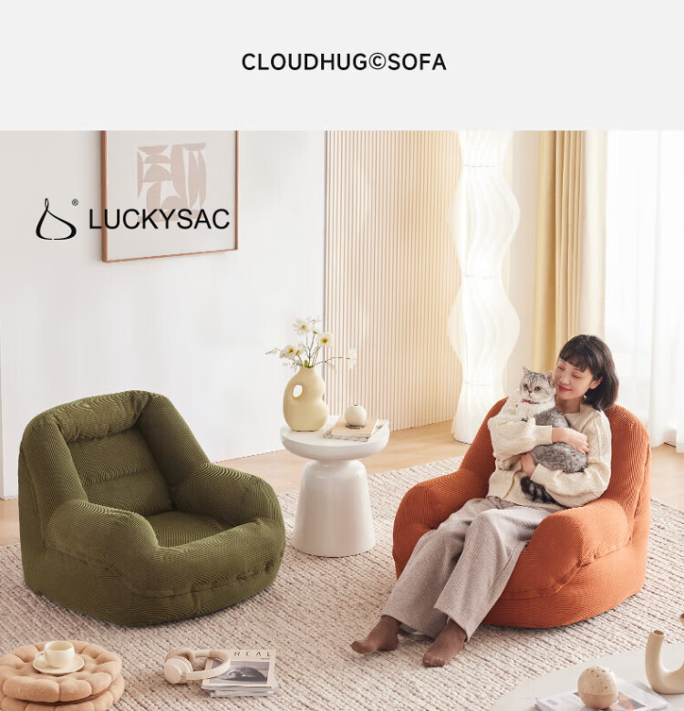 LUCKYSAC Wowo lazy sofa bean bag living room bedroom balcony single small sofa chair human dog kennel standard model maple leaf brown