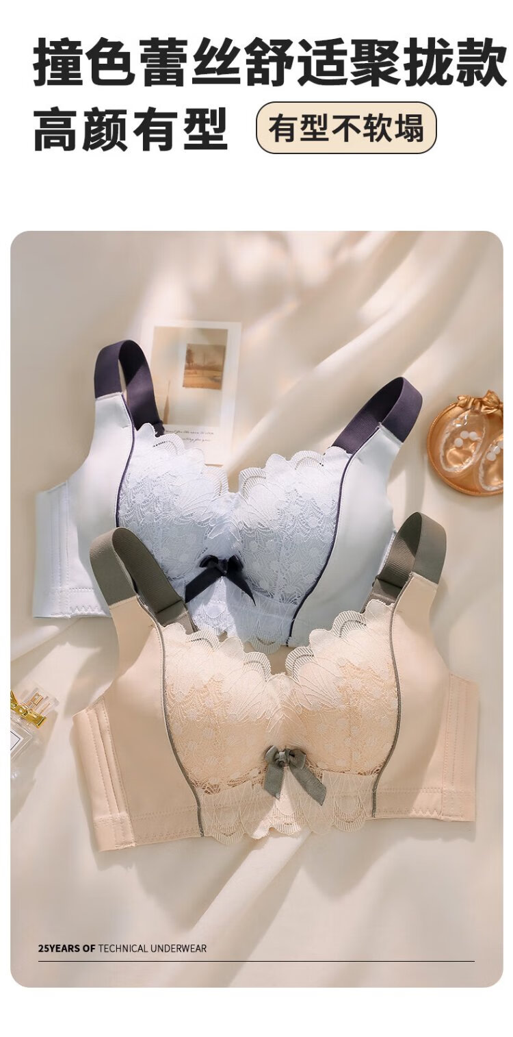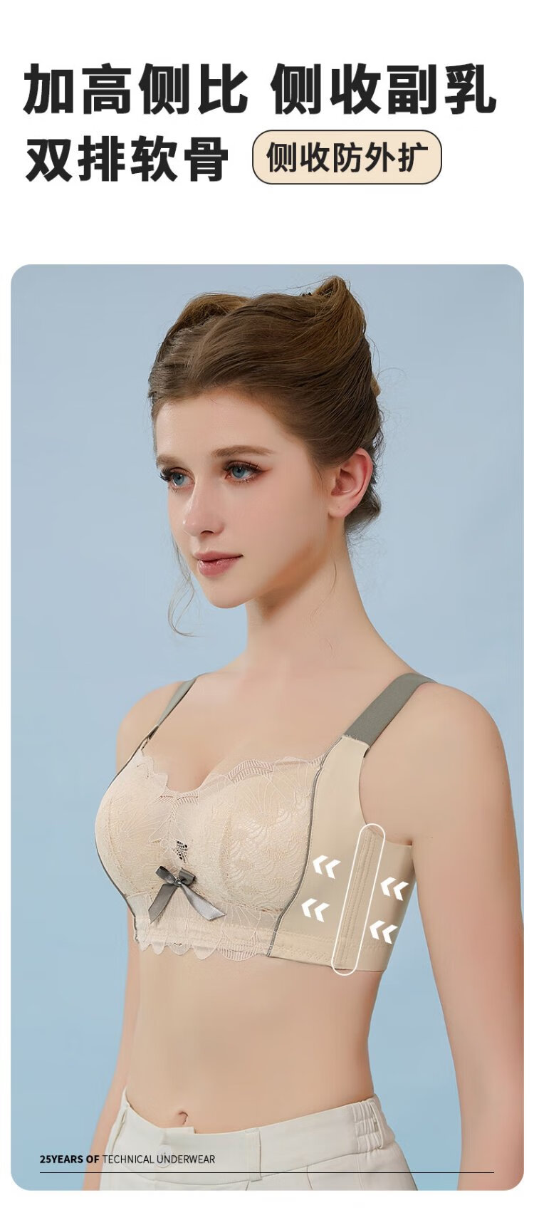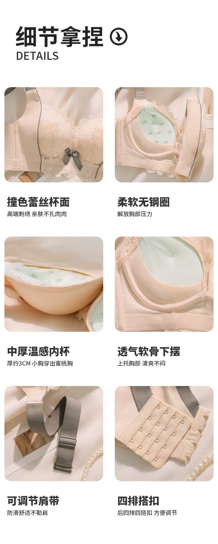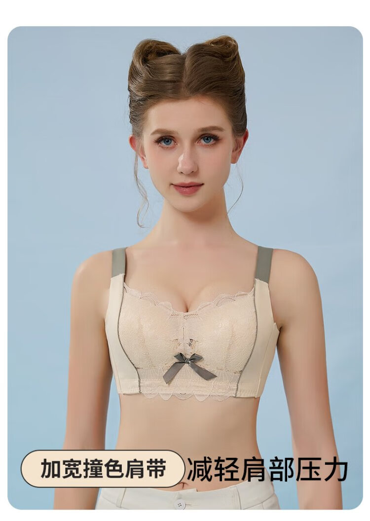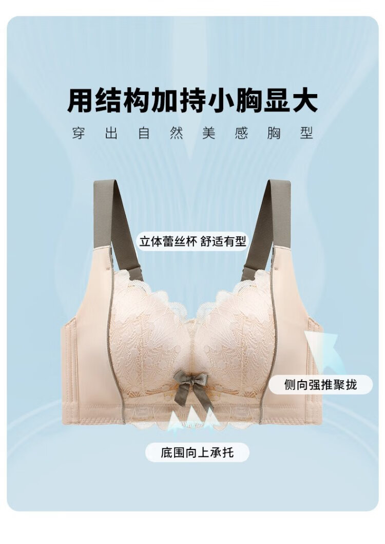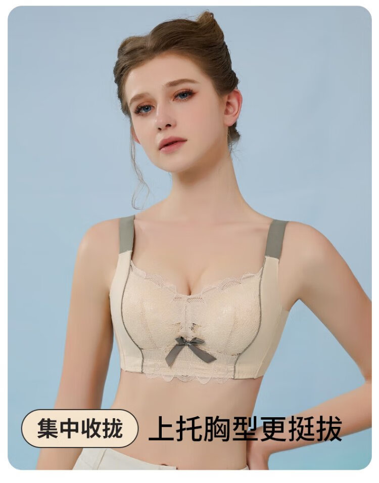 Catman Underwear Female Sexy Lace Small Breast Push-up Bra Top-up Anti-sagging No Wire Ring Push-up Bra Skin Color 34AB