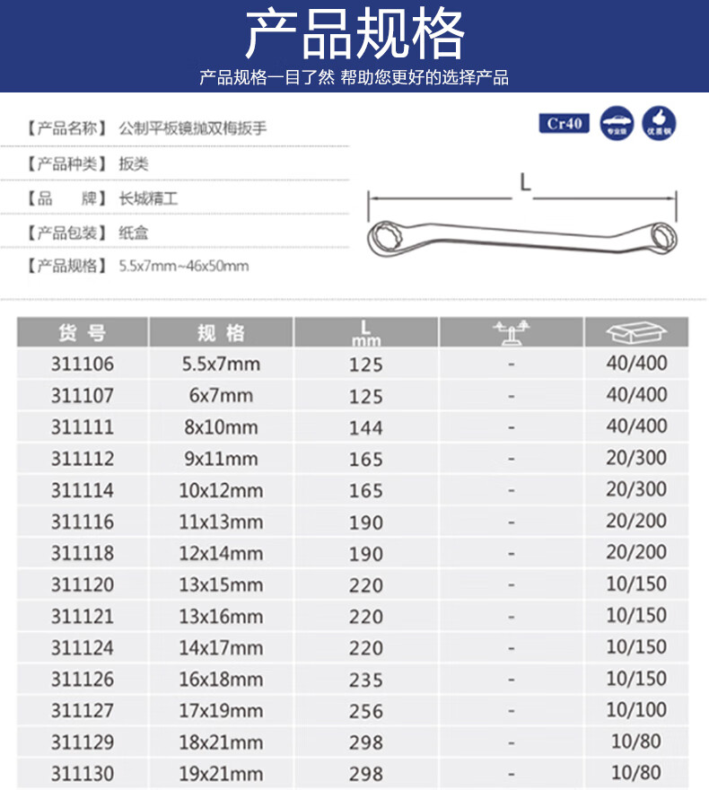 Great Wall Double Plum Wrench Double-headed Plum Blossom Wrench Industrial Grade Quick Wrench Auto Repair Tool 17*19mm 311127