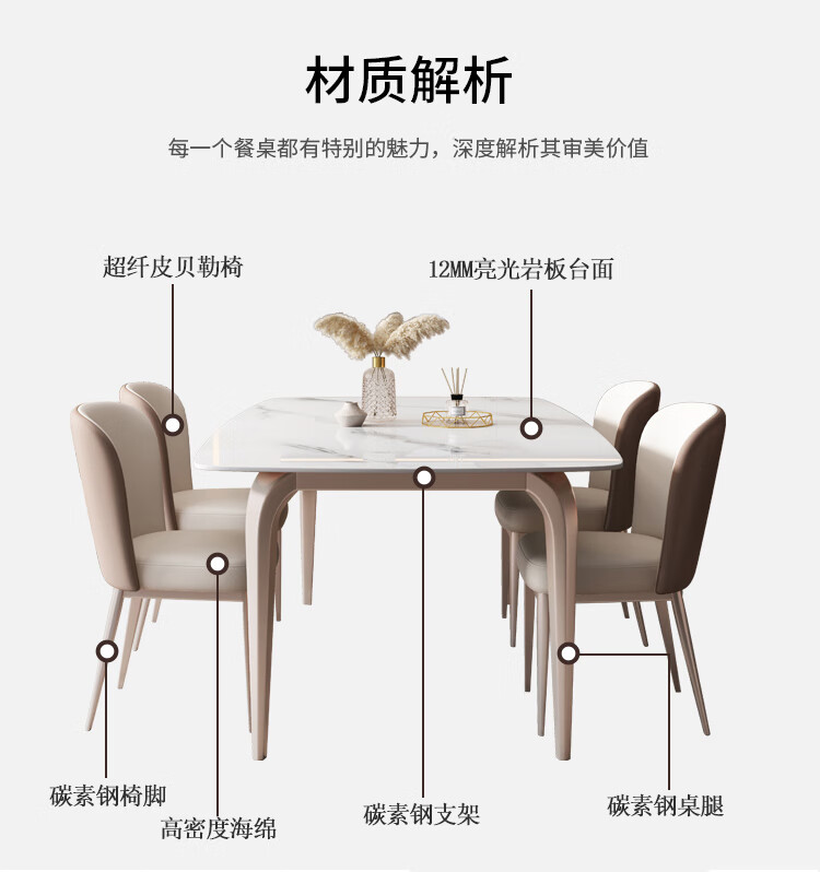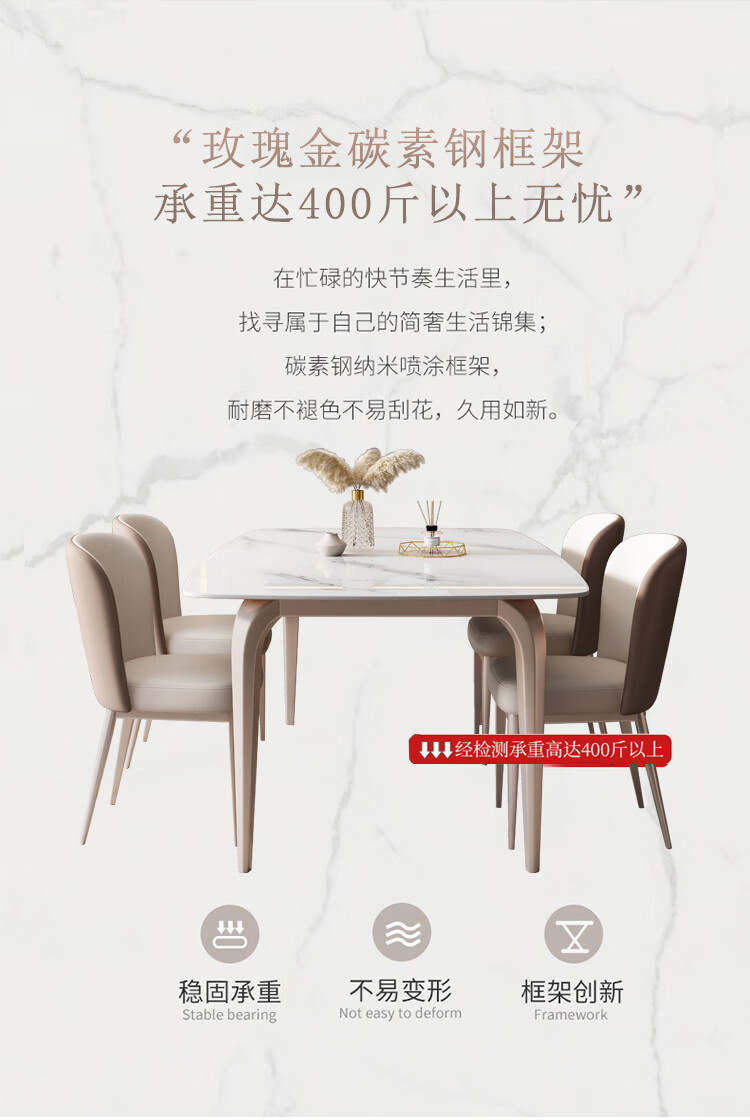 Croft dining table home thickened slate elephant leg dining table and chair combination light luxury dining table 905# 1.3m one table and four chairs