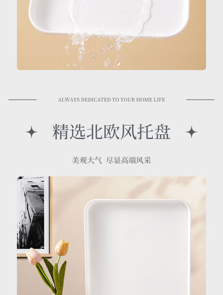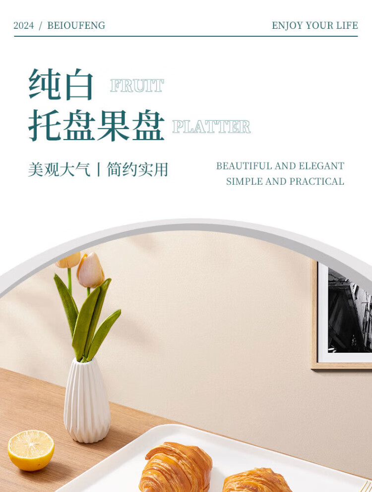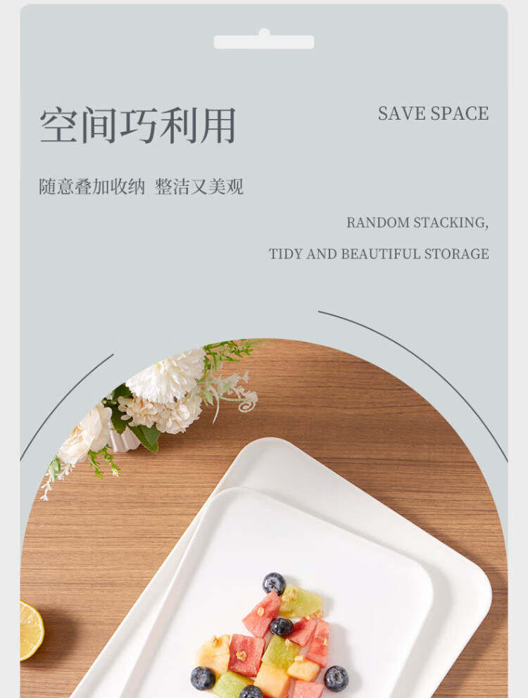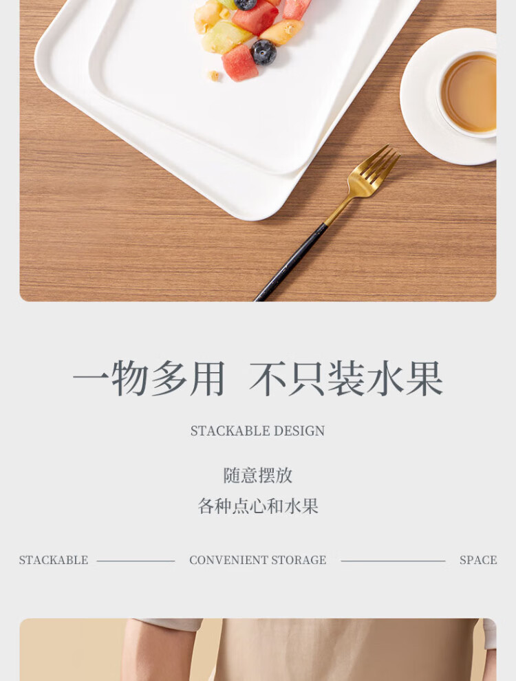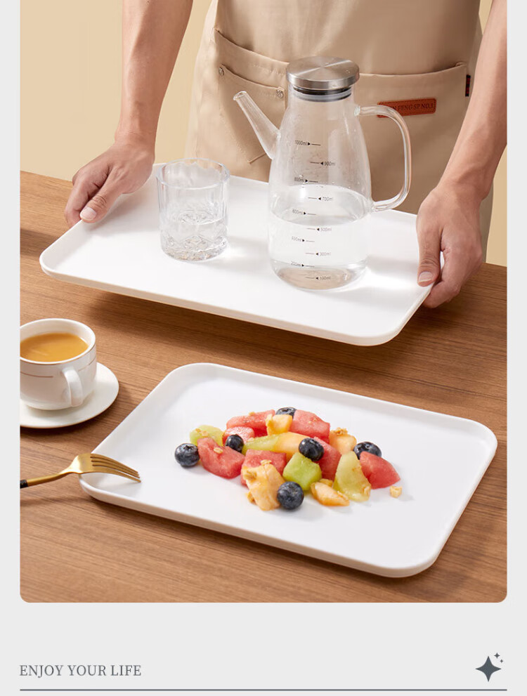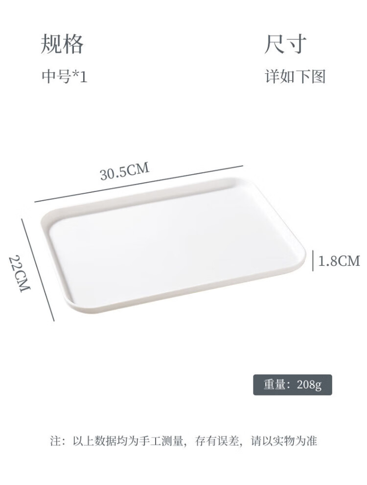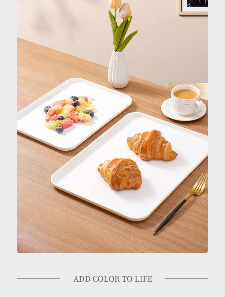 Baijie rectangular fruit tray tea tray household fruit tray breakfast tray storage tray living room snack tray pure white medium size