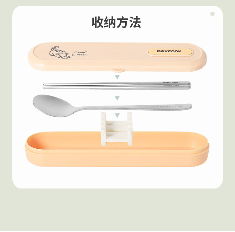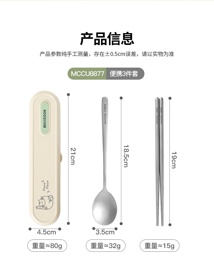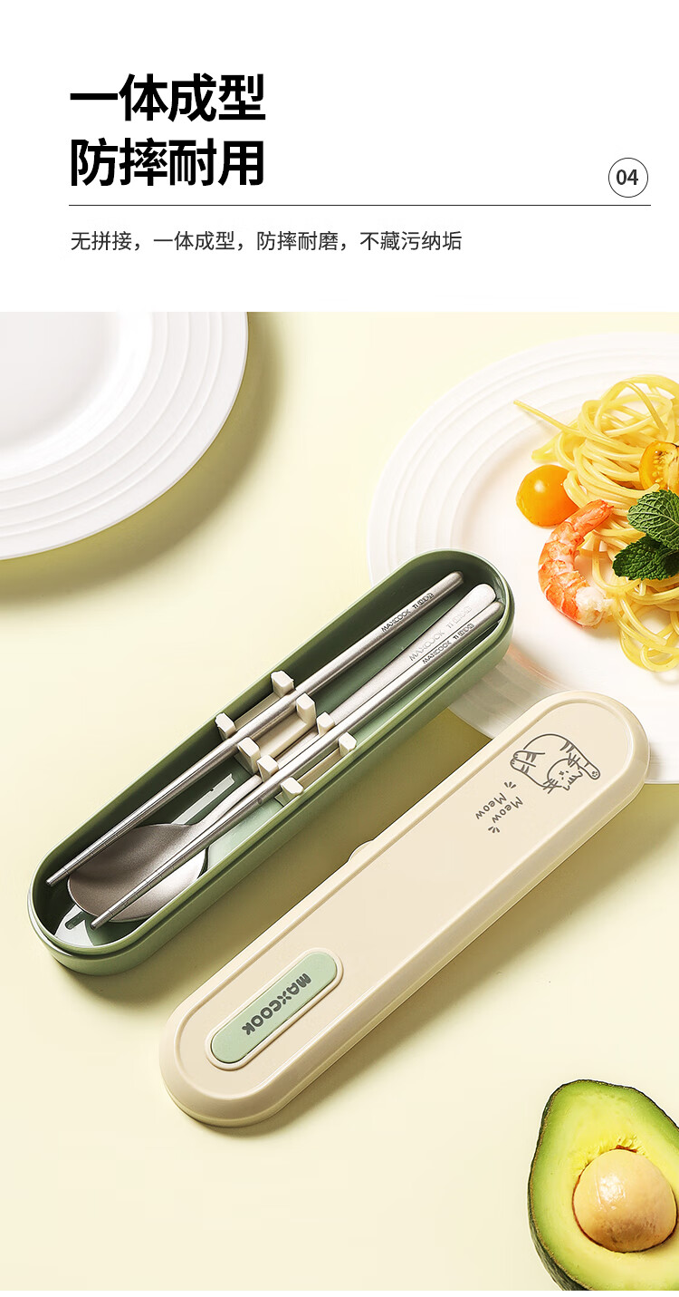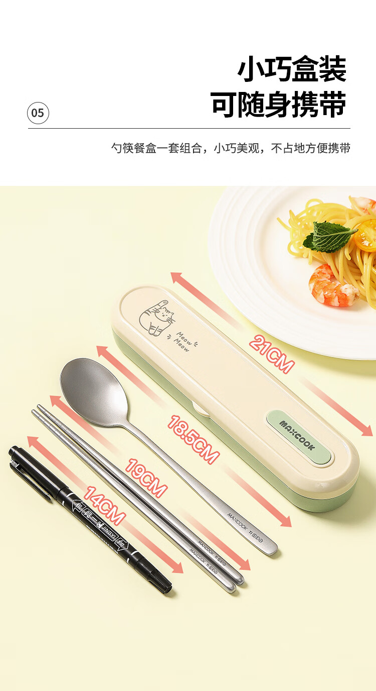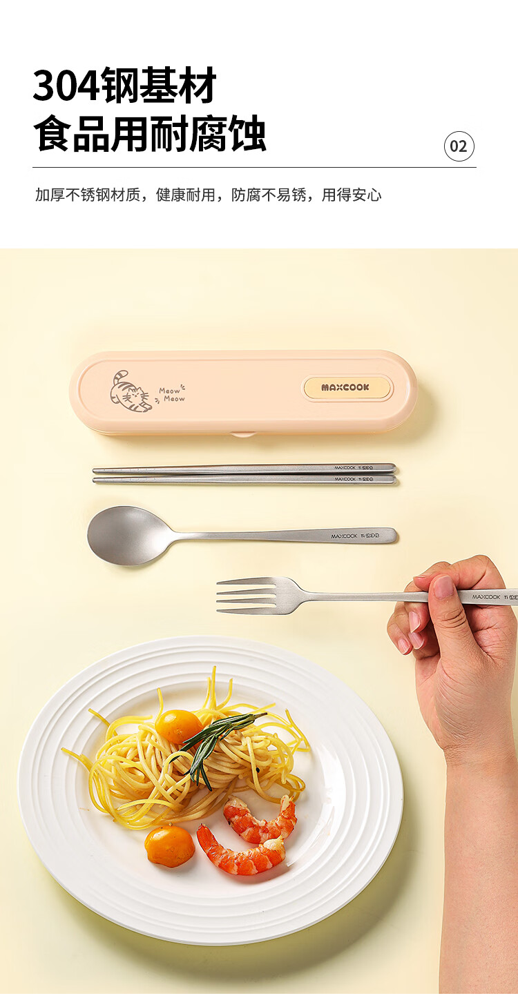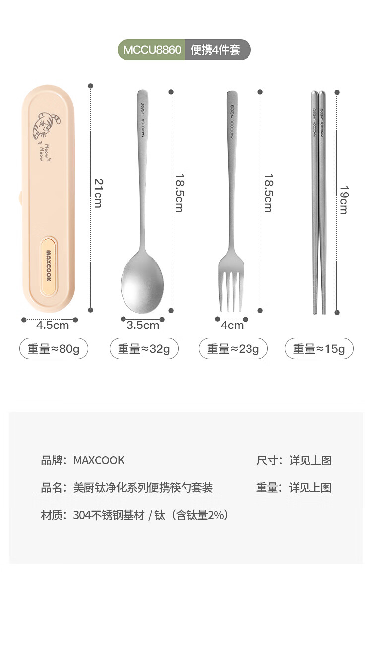 MAXCOOK titanium purified 304 stainless steel chopsticks and spoons tableware set containing titanium portable chopsticks and spoons 3-piece set MCCU8877