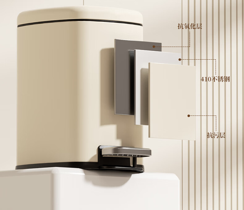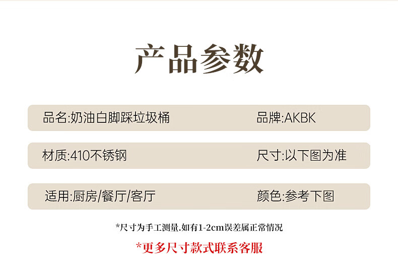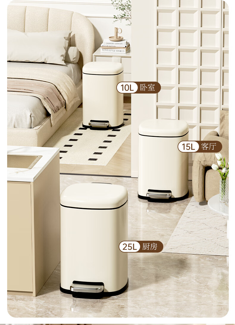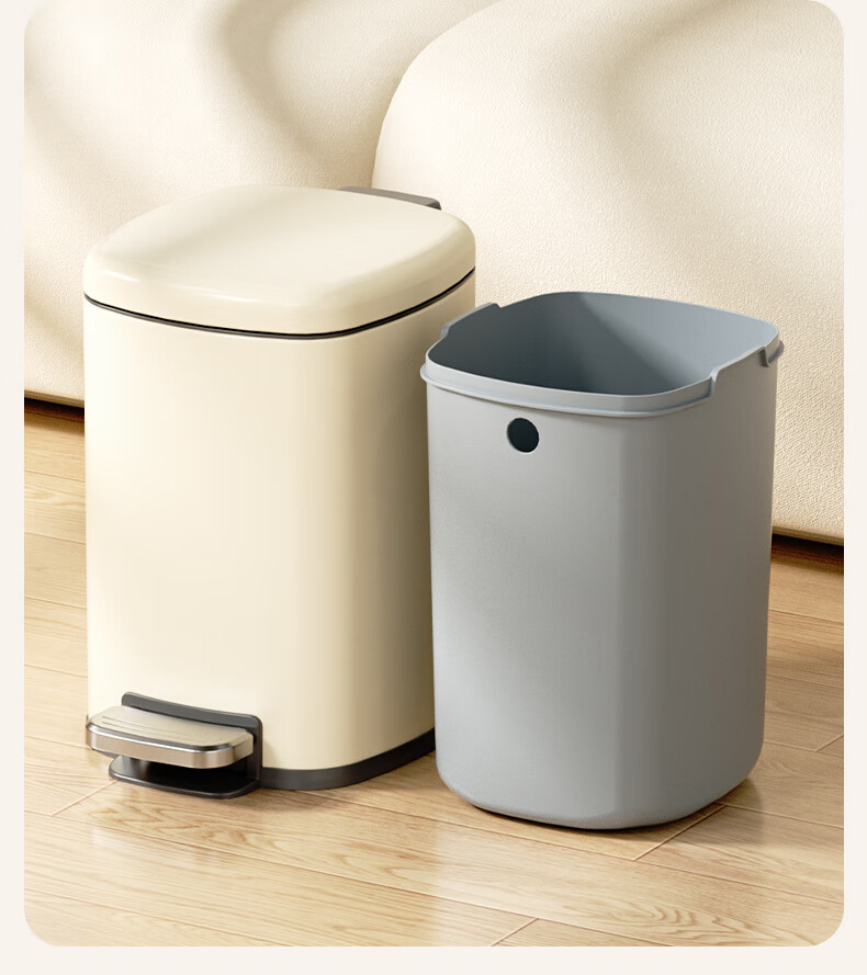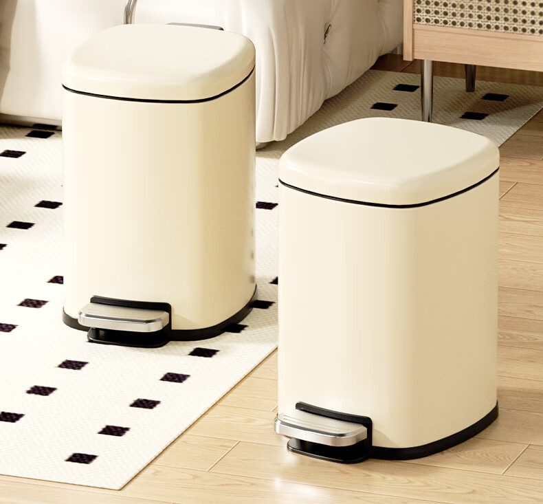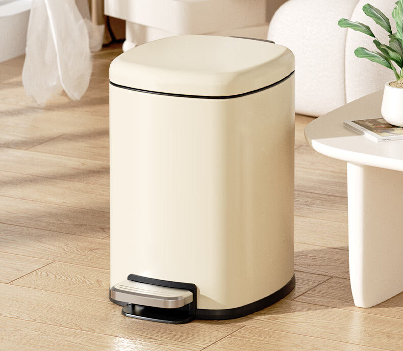 AKBK kitchen trash can 10L stainless steel foot-operated with lid living room bedroom bathroom office large cream style