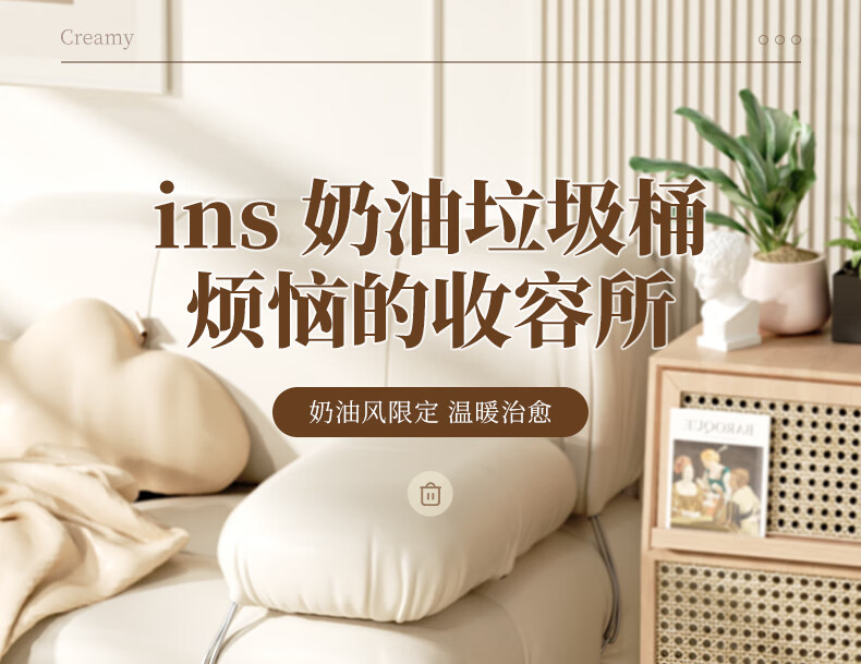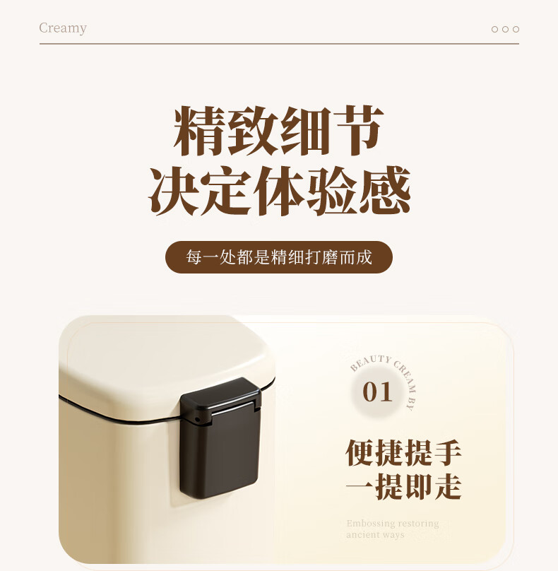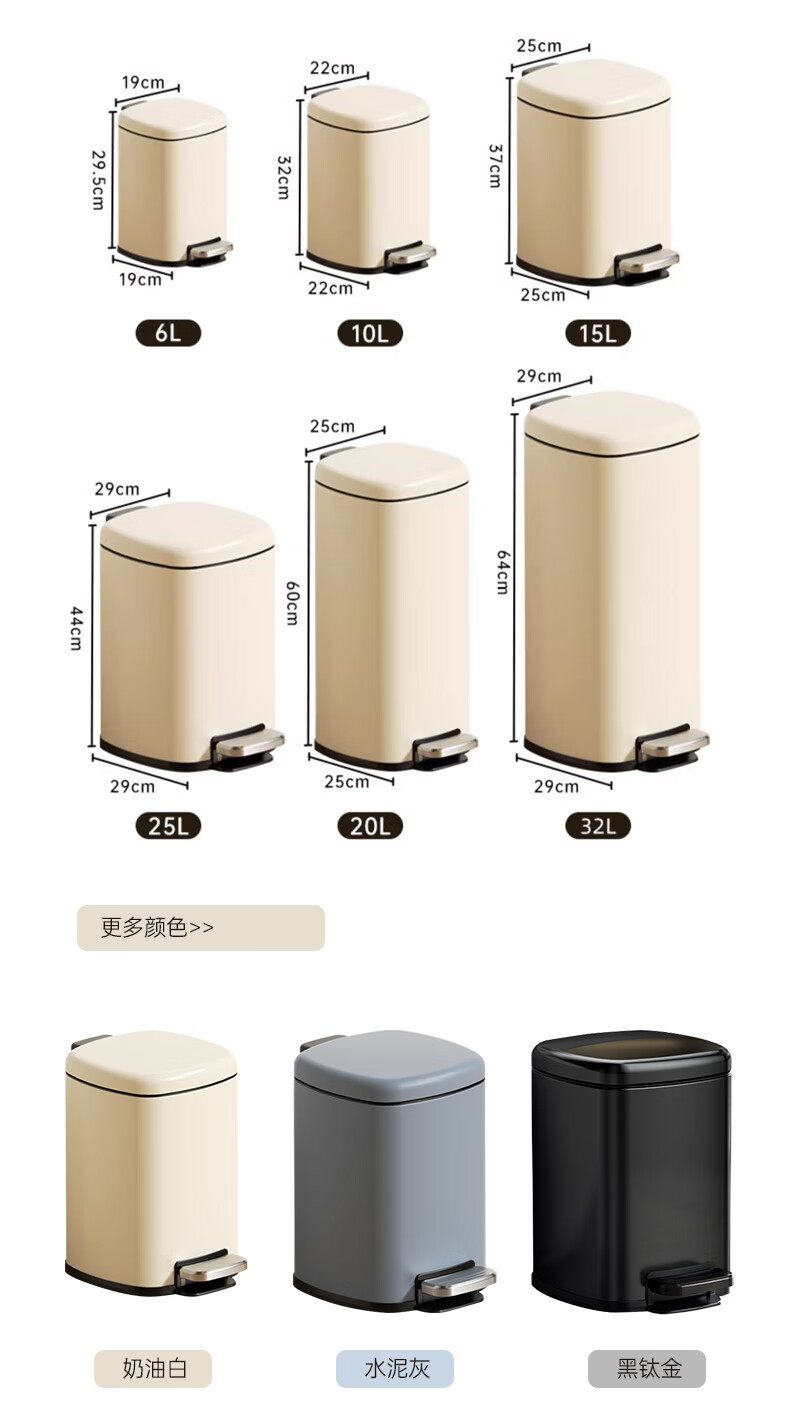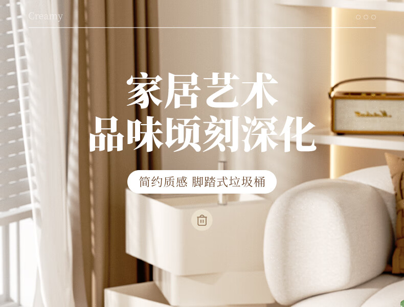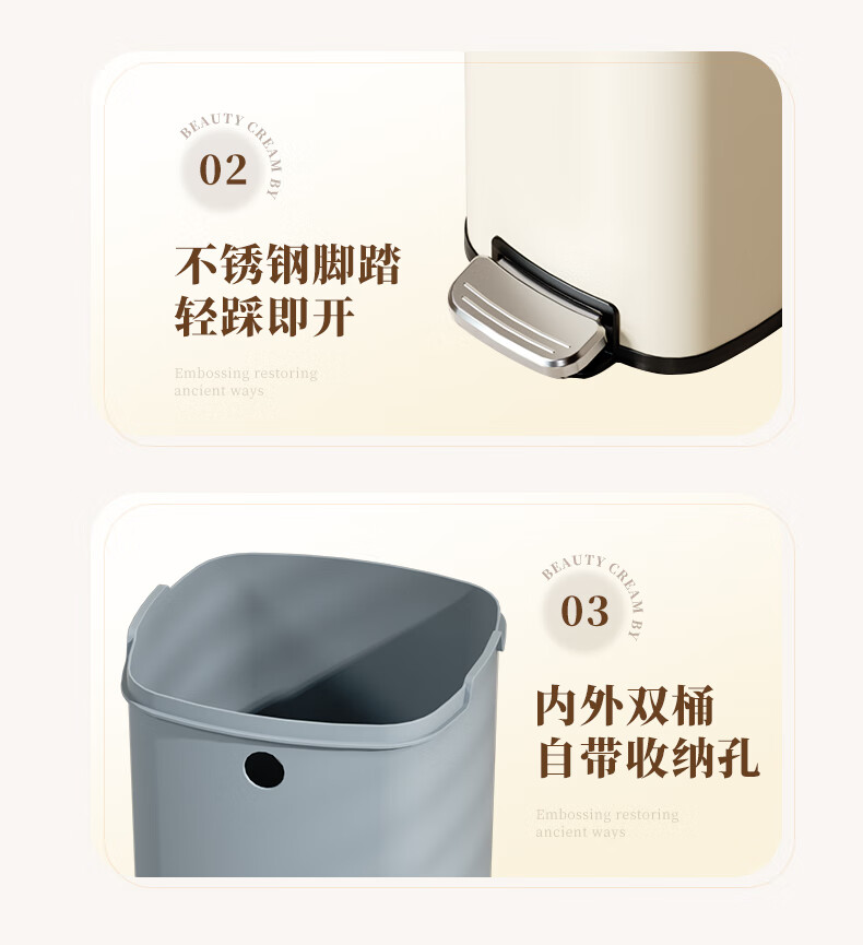 AKBK kitchen trash can 10L stainless steel foot-operated with lid living room bedroom bathroom office large cream style