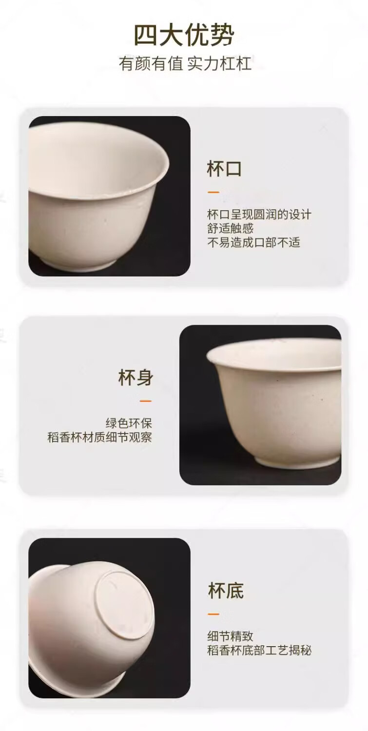 PAKCHOICE disposable kung fu tea cup 60ml degradable rice husk tea cup high-end heat-resistant tea cup 96 pieces + cup holder