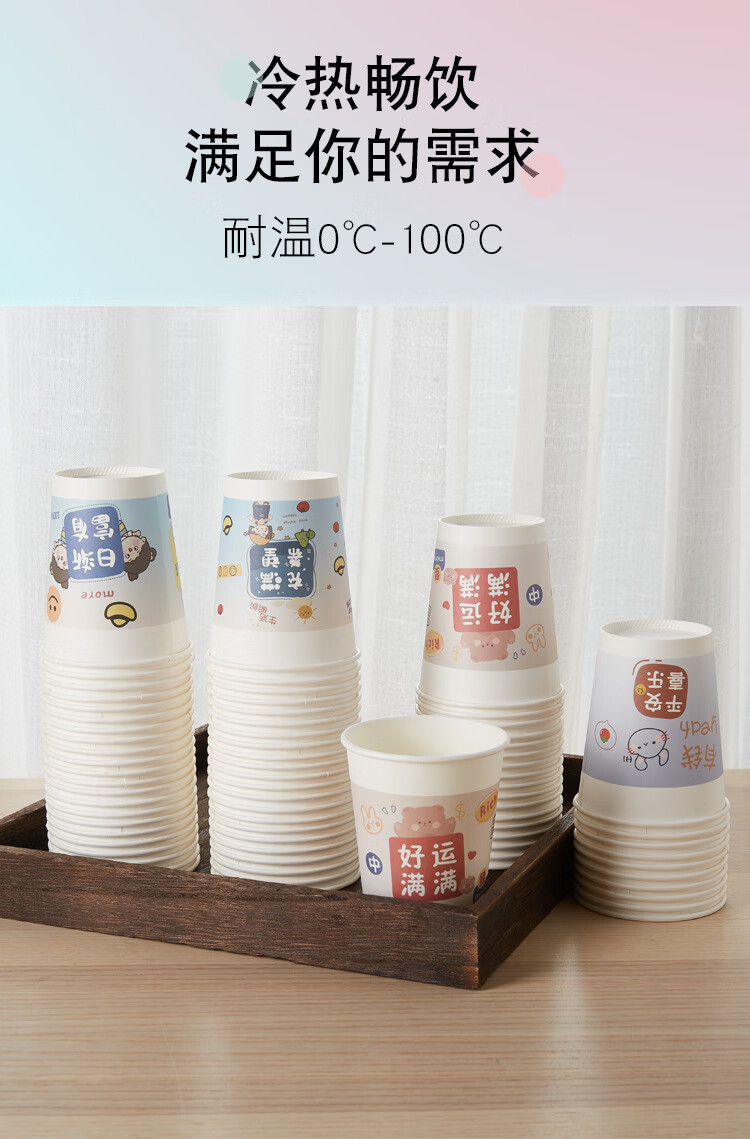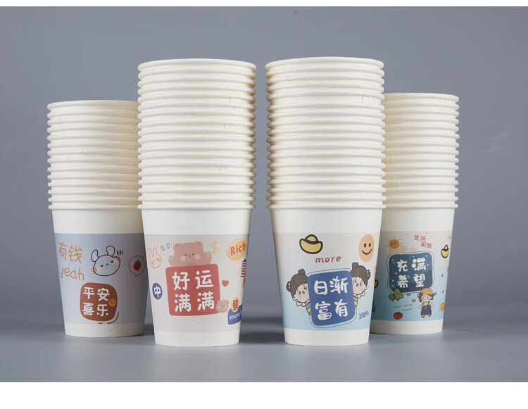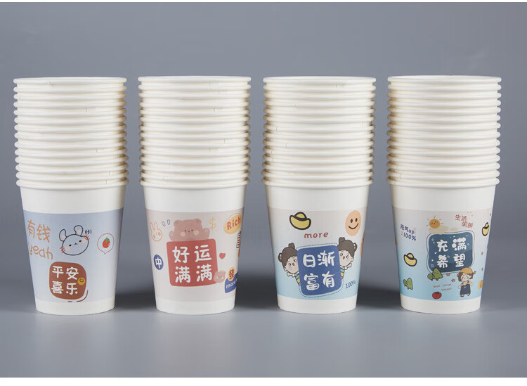 PINYU disposable cup thickened paper cup 250ml*100 pieces beautiful meaning water cup office business home anti-scald cup