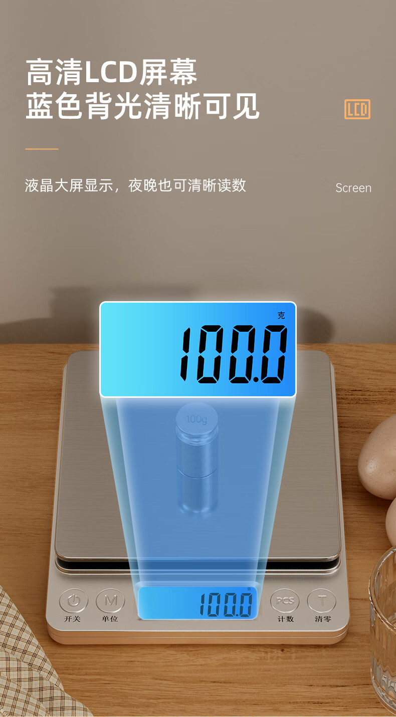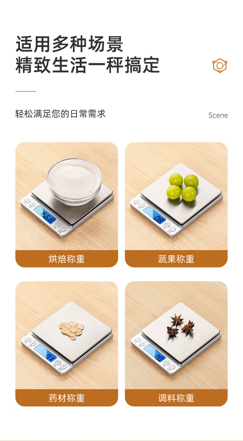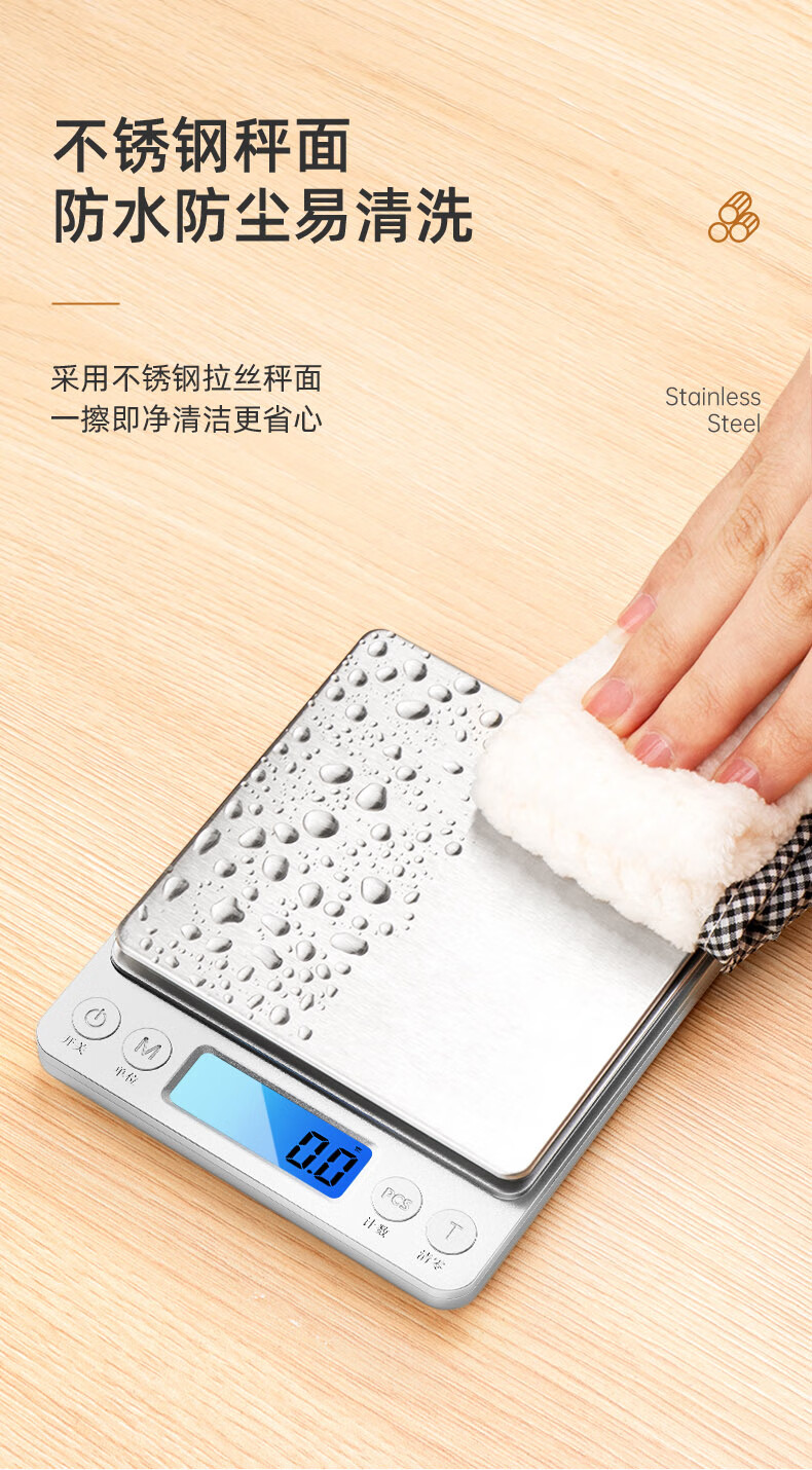 Meilen electronic scale kitchen scale household small high-precision baking scale gram weight food scale stainless steel scale surface 0.1g