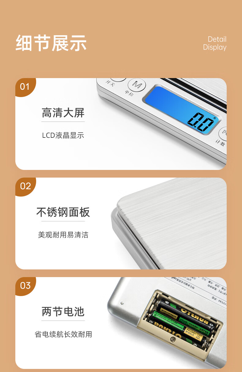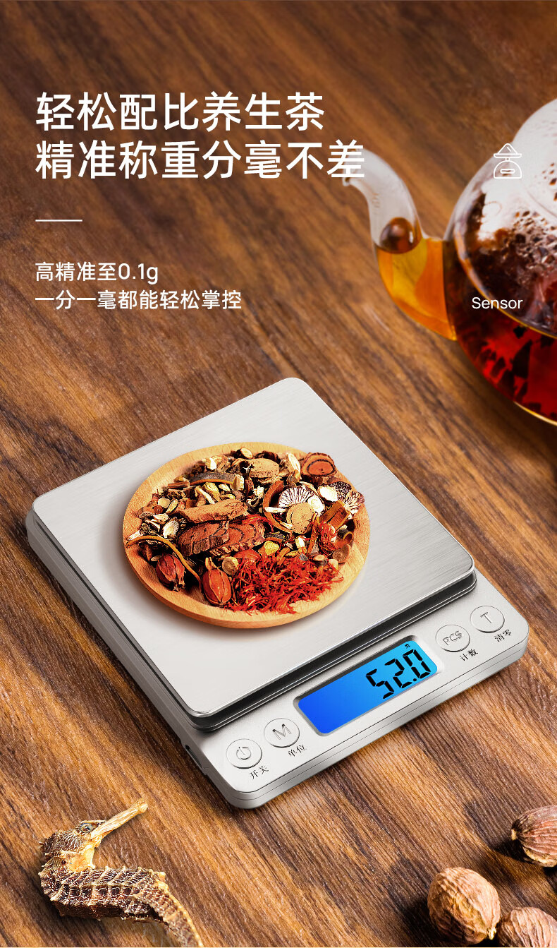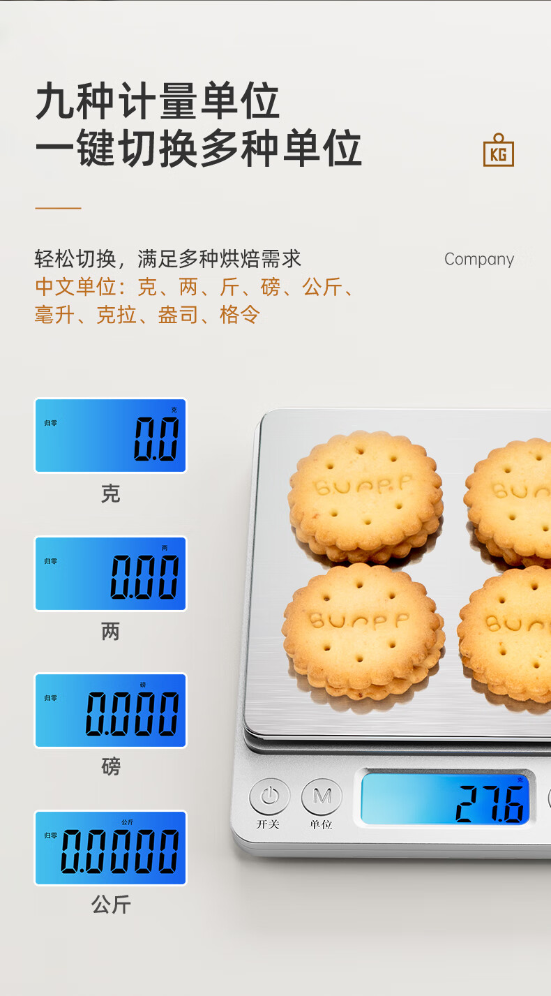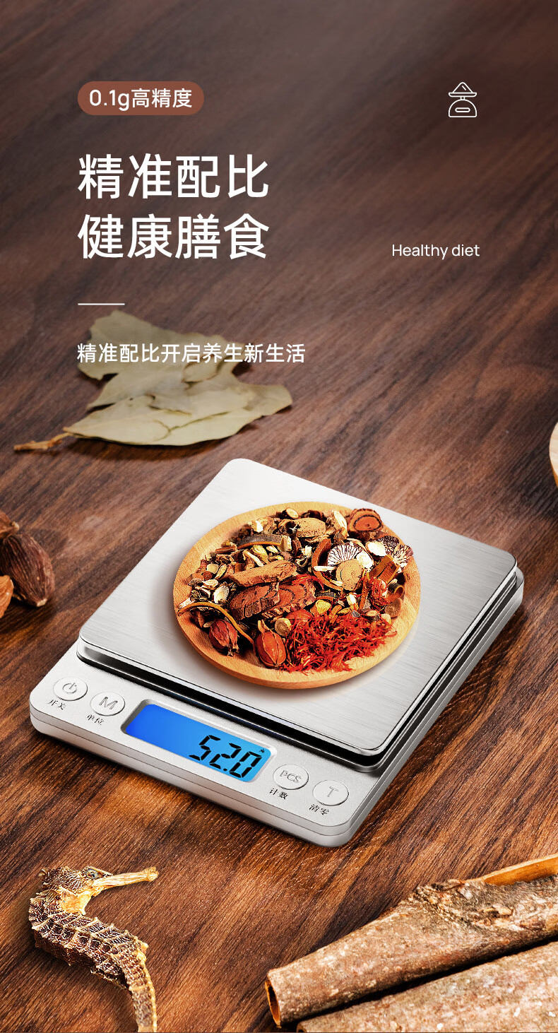 Meilen electronic scale kitchen scale household small high-precision baking scale gram weight food scale stainless steel scale surface 0.1g