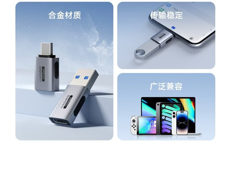 Haibis USB to Type-C adapter A male to USB-C female port OTG mobile phone U disk high-speed conversion suitable for computer iPhone16 tablet iPad car charging data cable