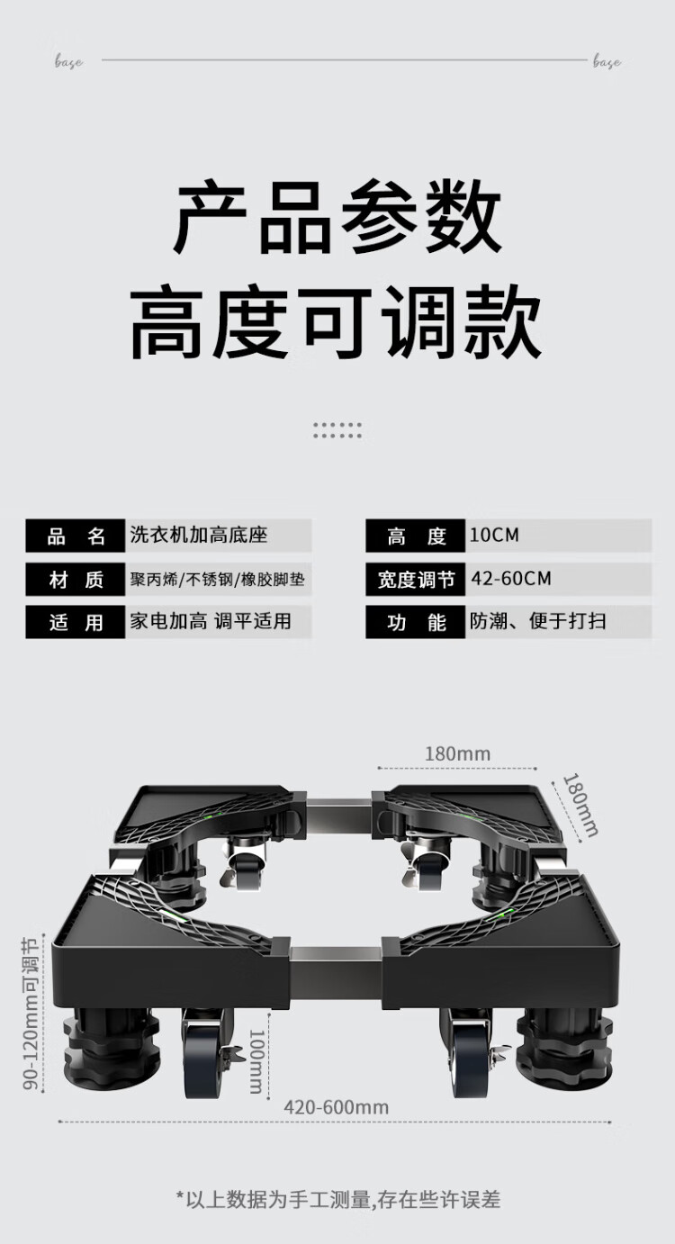Jiangwutong washing machine base bracket removable drum impeller anti-slip and shock-proof foot pad air conditioner refrigerator heightening suitable for Little Swan Midea Haier Universal