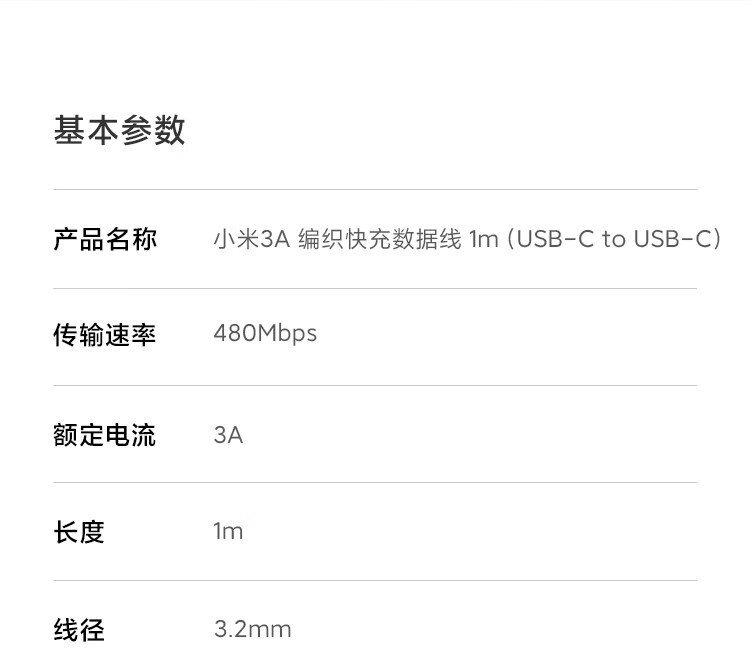 Xiaomi 3A braided fast charging data cable 1m