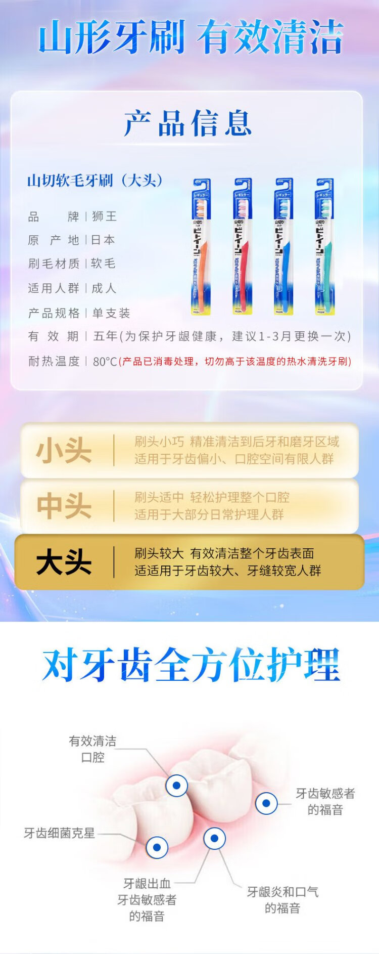 Lion adult toothbrush 1 pack large head soft bristles deep cleaning elastic brush handle imported from Japan
