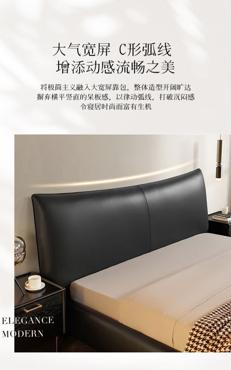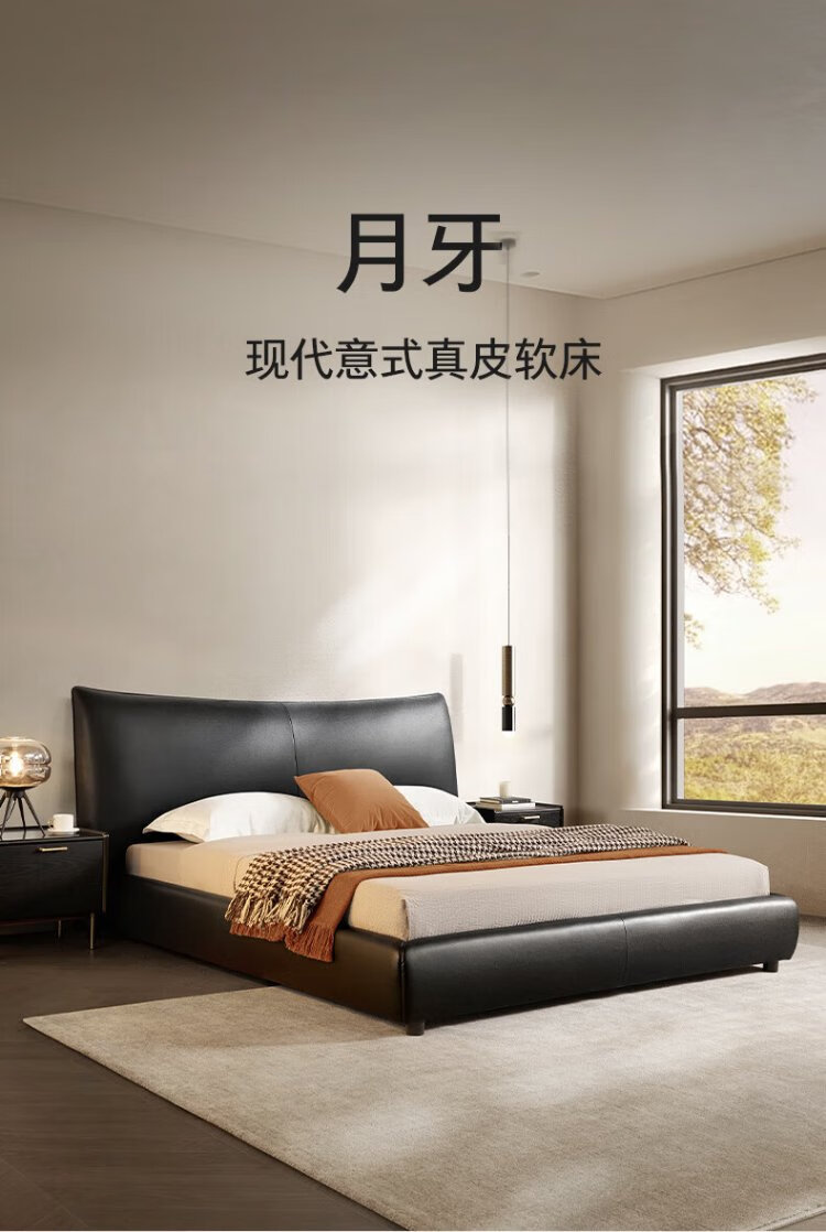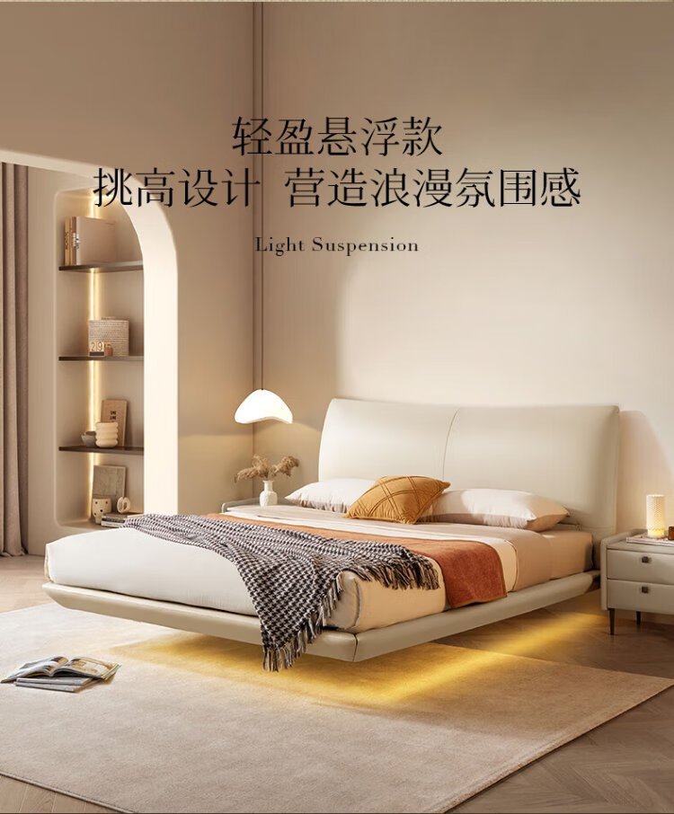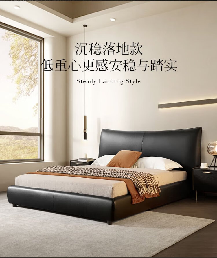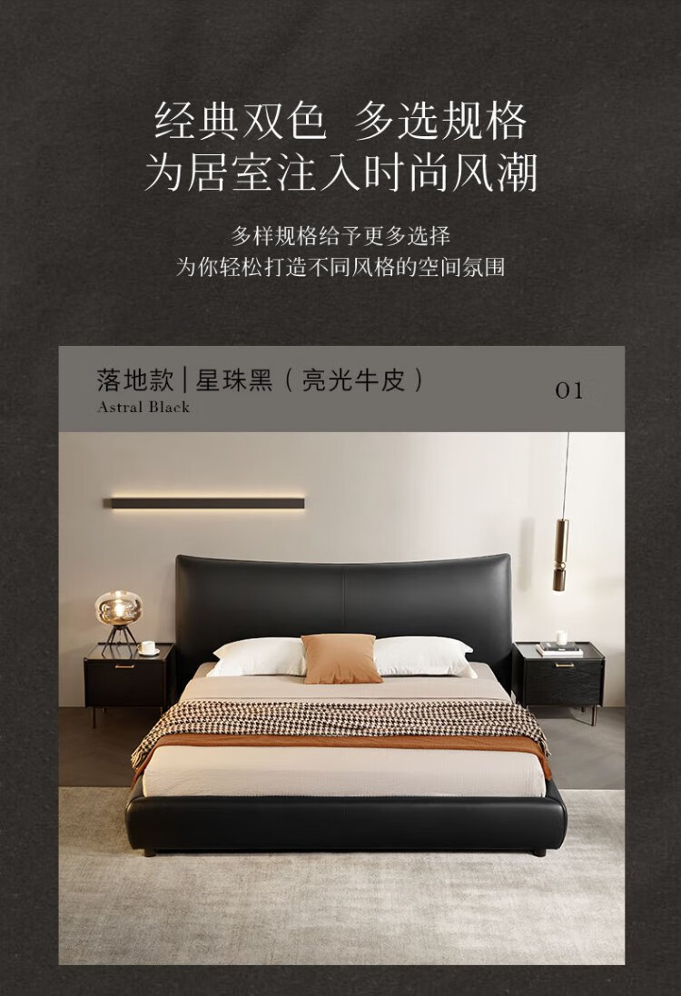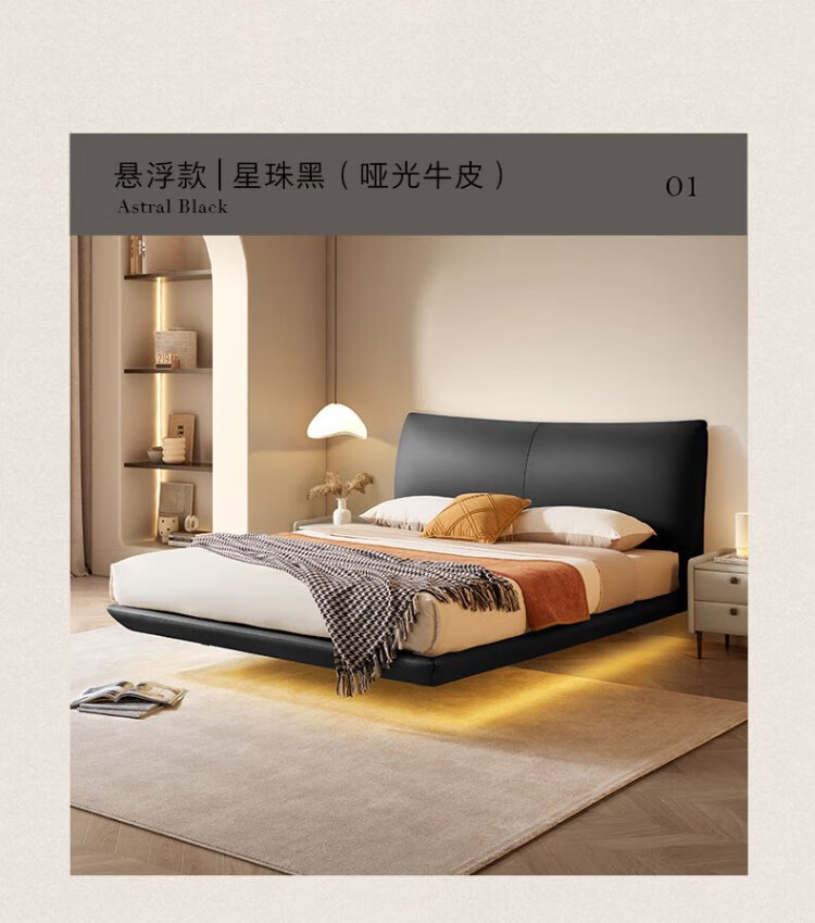 KUKA Modern Light Luxury First-layer Cowhide Suspended Bed Bedroom Double Bed 8129 Star Bead Black Suspended Model 1.8m