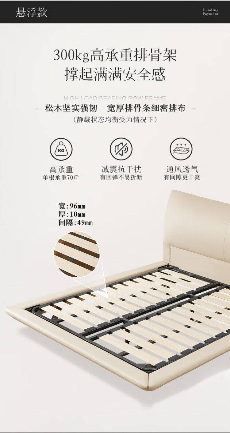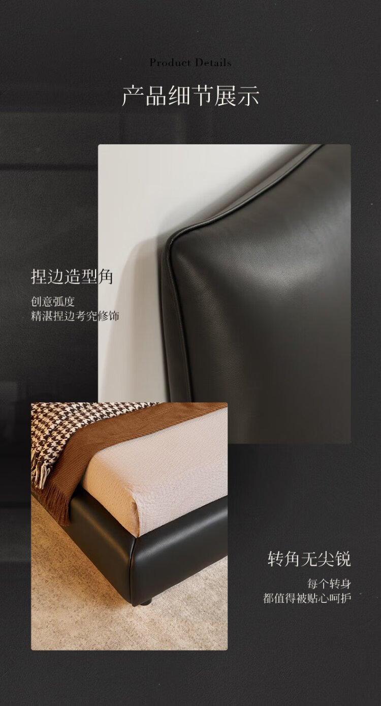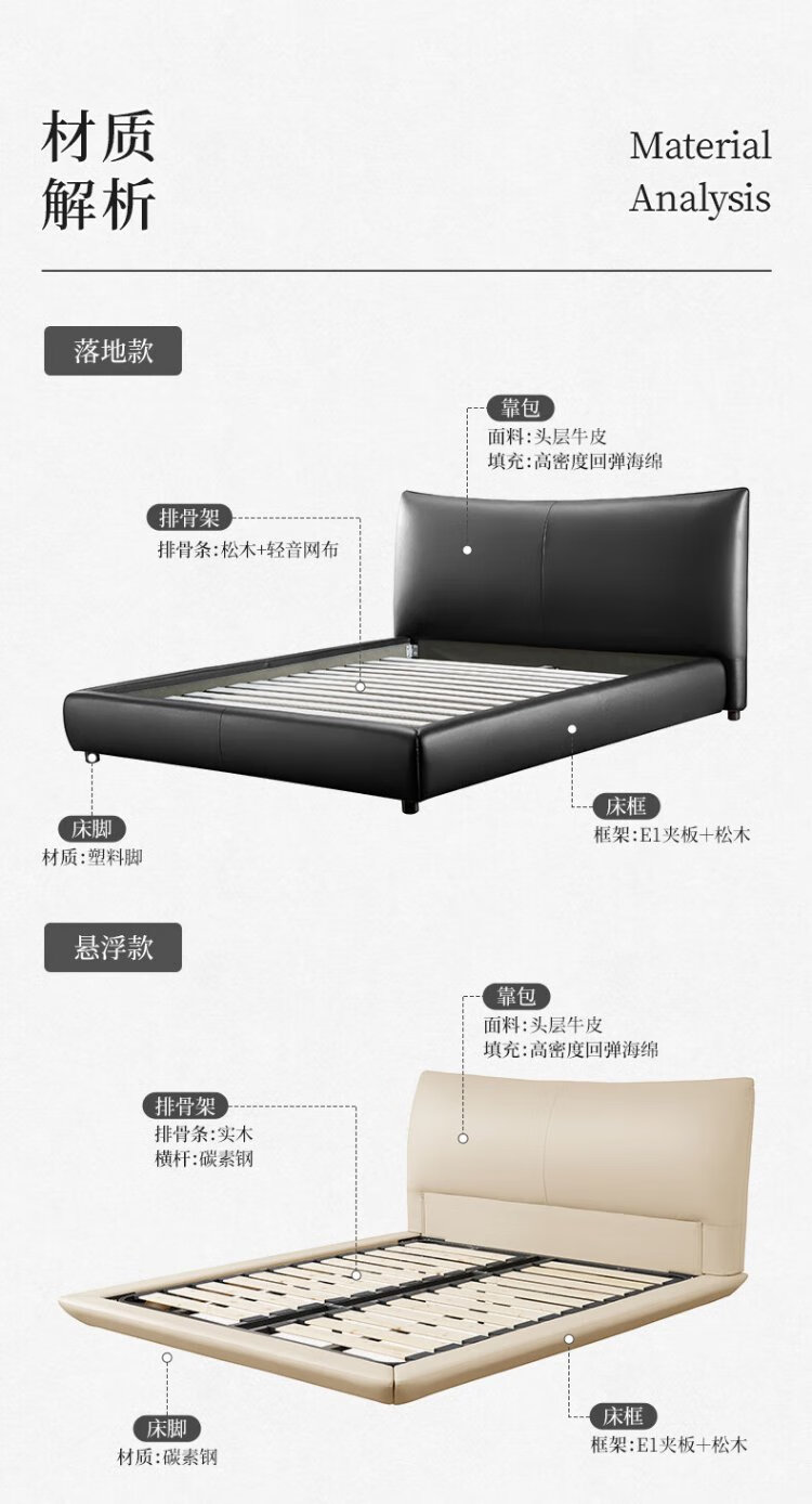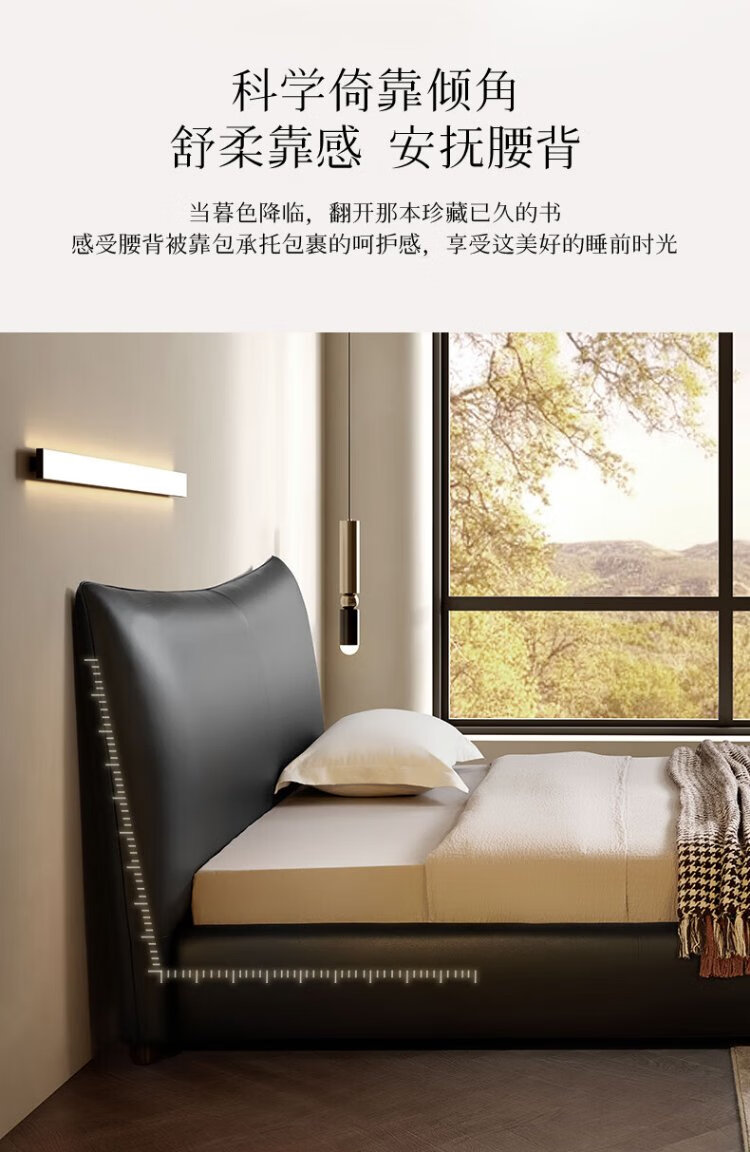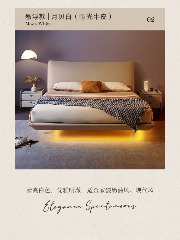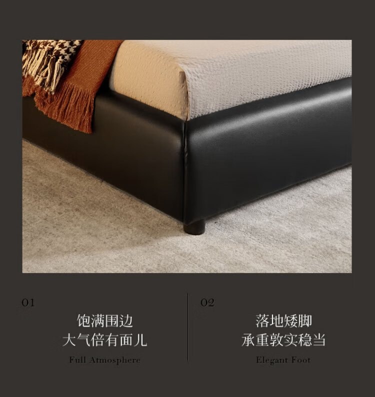 KUKA Modern Light Luxury First-layer Cowhide Suspended Bed Bedroom Double Bed 8129 Star Bead Black Suspended Model 1.8m