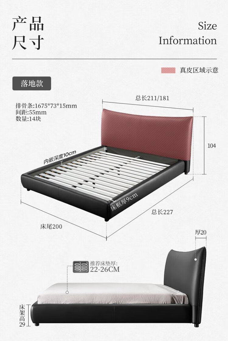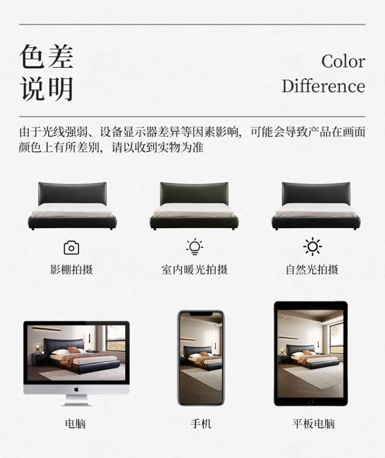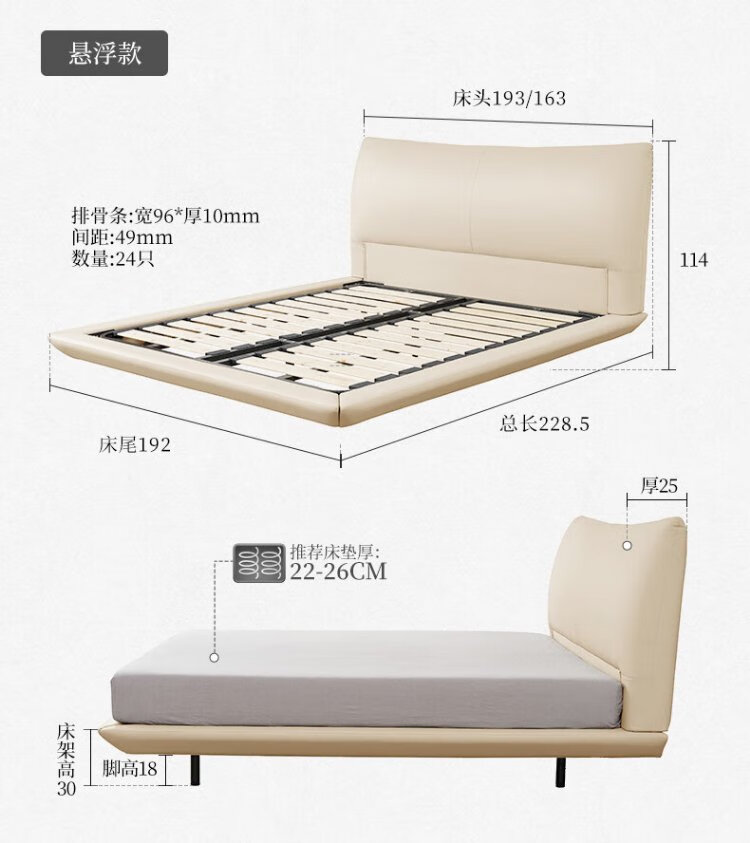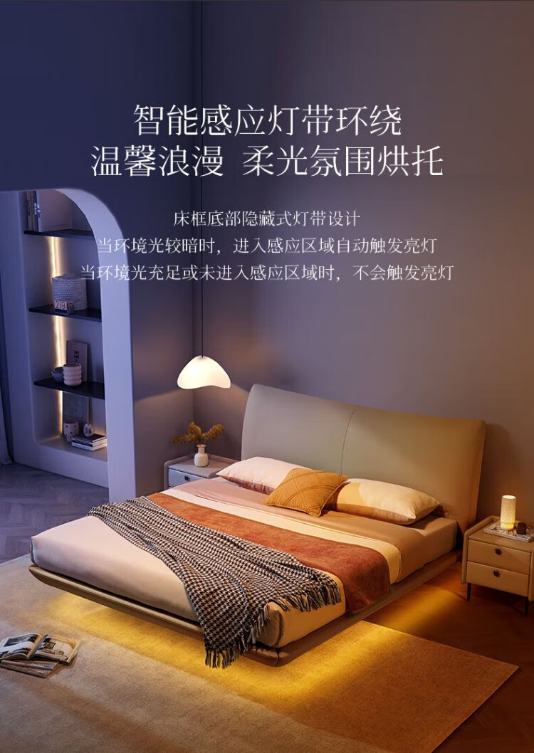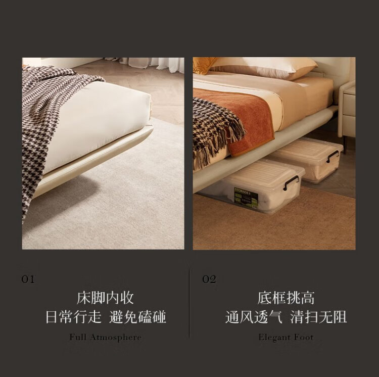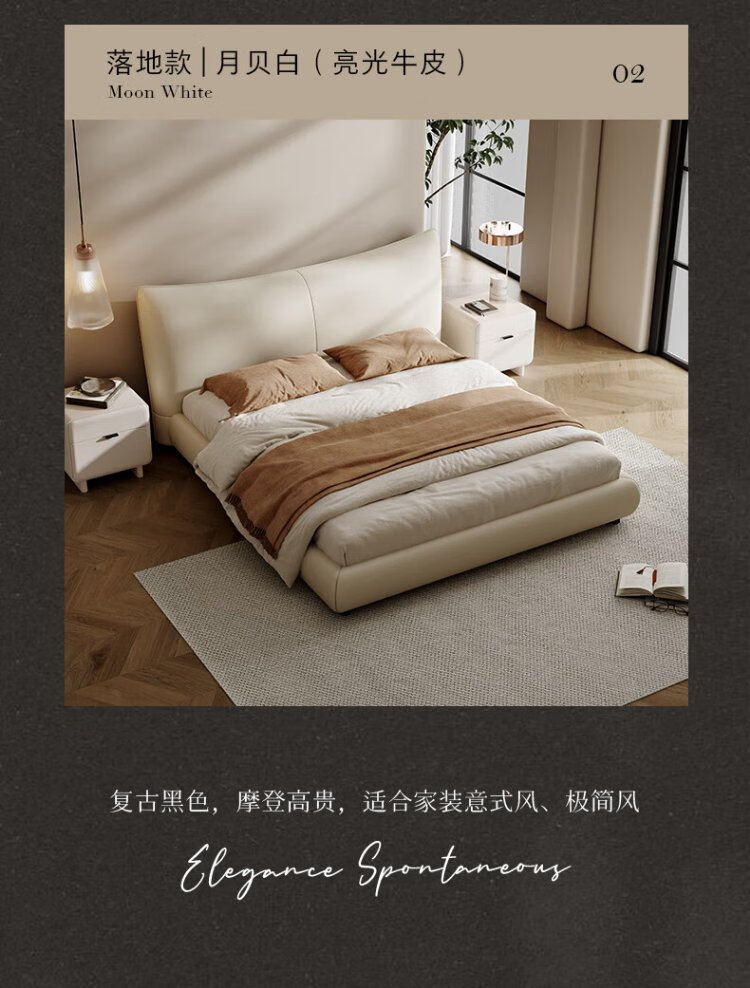 KUKA Modern Light Luxury First-layer Cowhide Suspended Bed Bedroom Double Bed 8129 Star Bead Black Suspended Model 1.8m