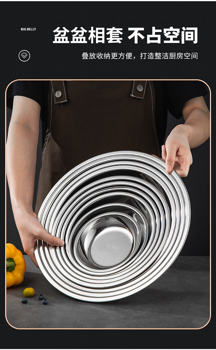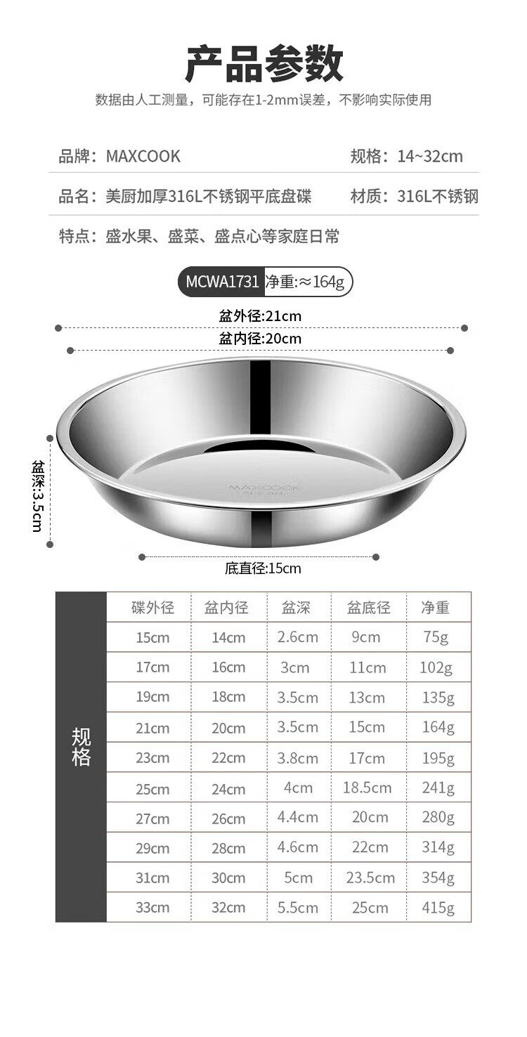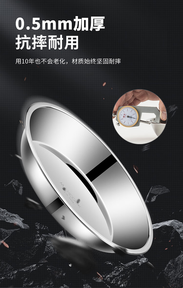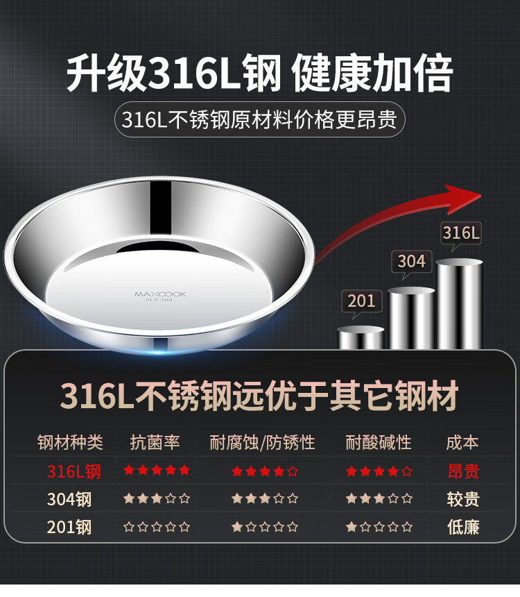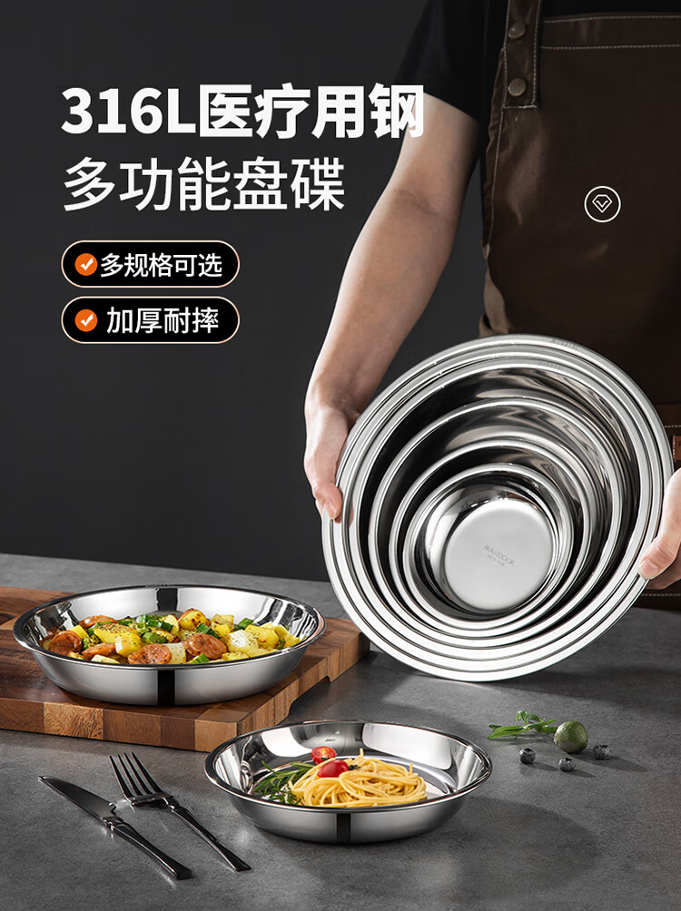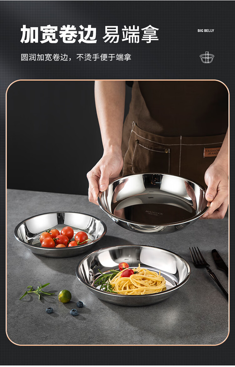 MAXCOOK 316L stainless steel dish, 20cm thickened, widened, deep and fall-resistant MCWA1731