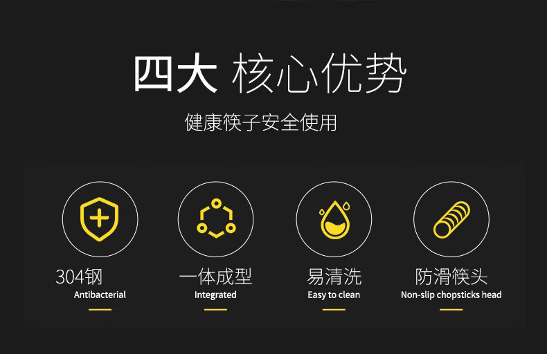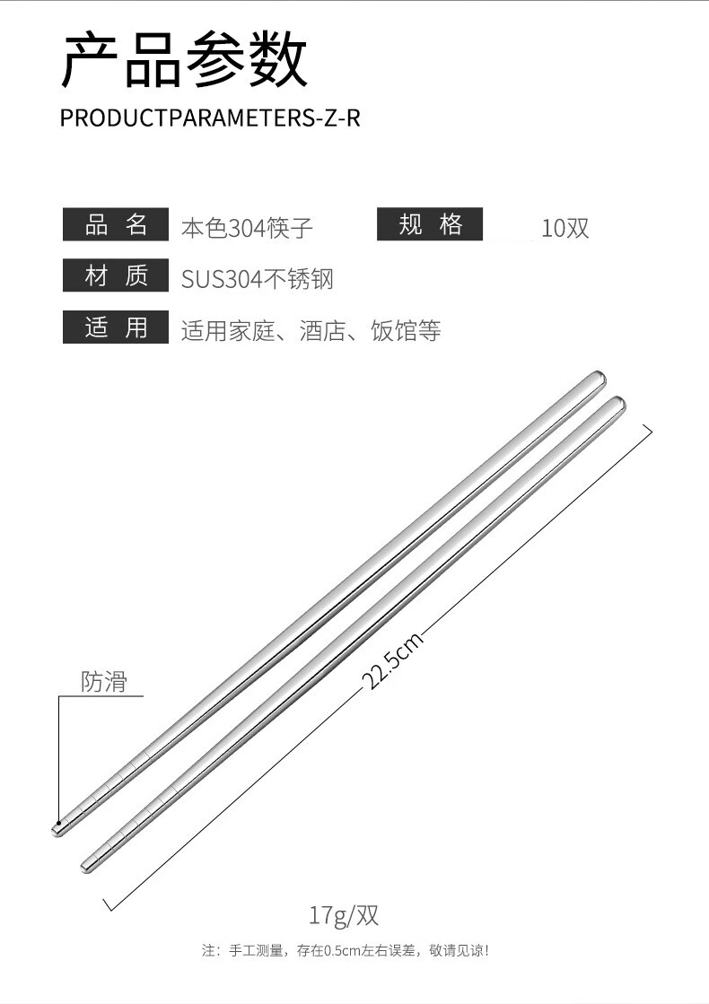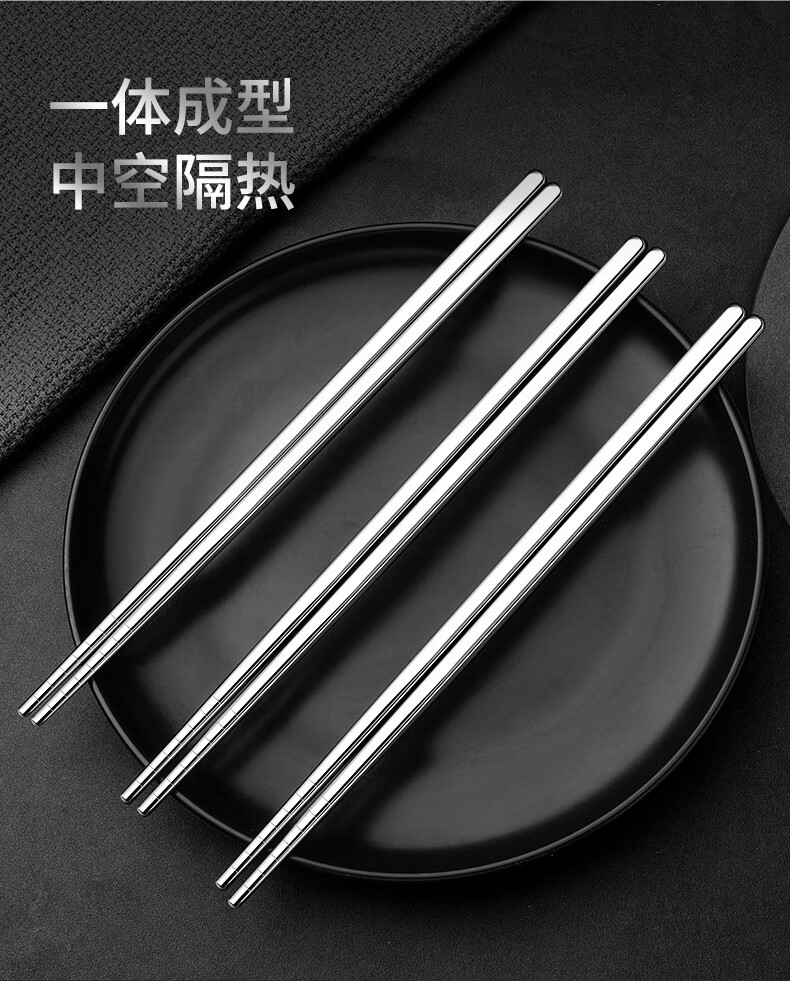 Pinyu 304 stainless steel chopsticks household high-end anti-slip, anti-scalding and mildew-proof family set square fast metal stainless steel