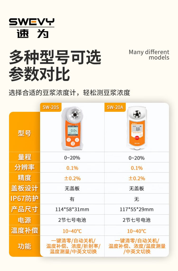 Suwei soy milk concentration meter high-precision digital display soy product measuring instrument soy milk tester concentration detector SW-20A