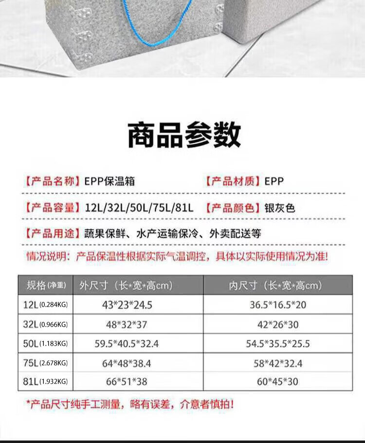 Jingulao KCAA-325 EPP insulated box, commercial canteen refrigeration, fresh-keeping, stall foam box, takeaway, meal delivery, outdoor vehicle-mounted 75L