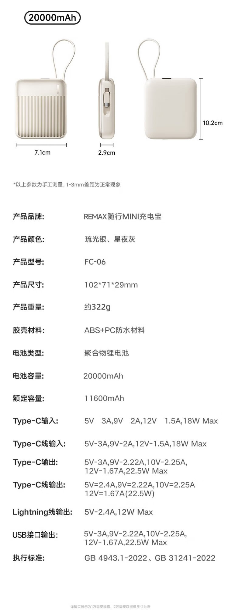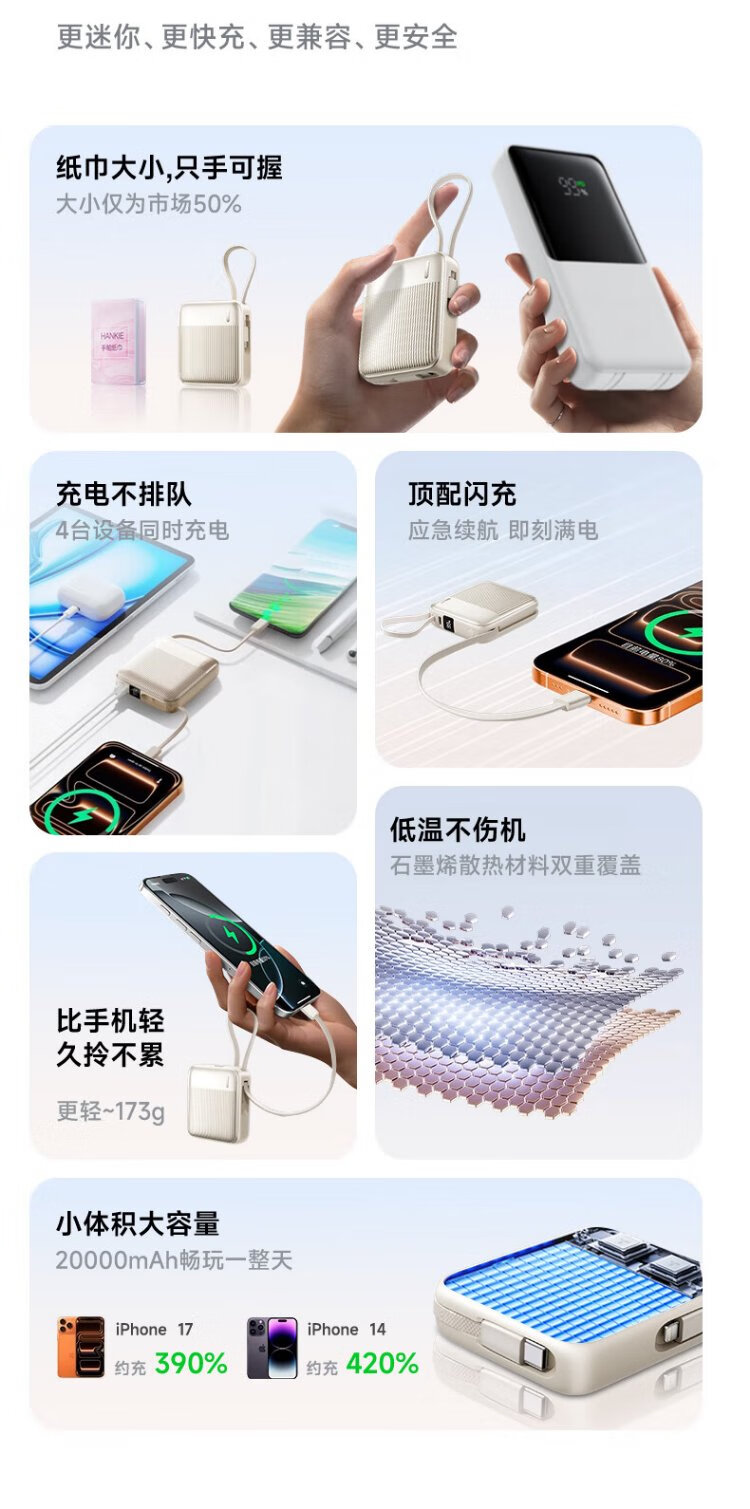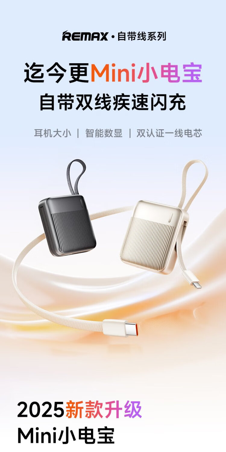 Remax 3C certified power bank 20000 mAh large capacity compact portable comes with 22.5W super fast charging suitable for Apple 17 Huawei Xiaomi can be used on airplanes