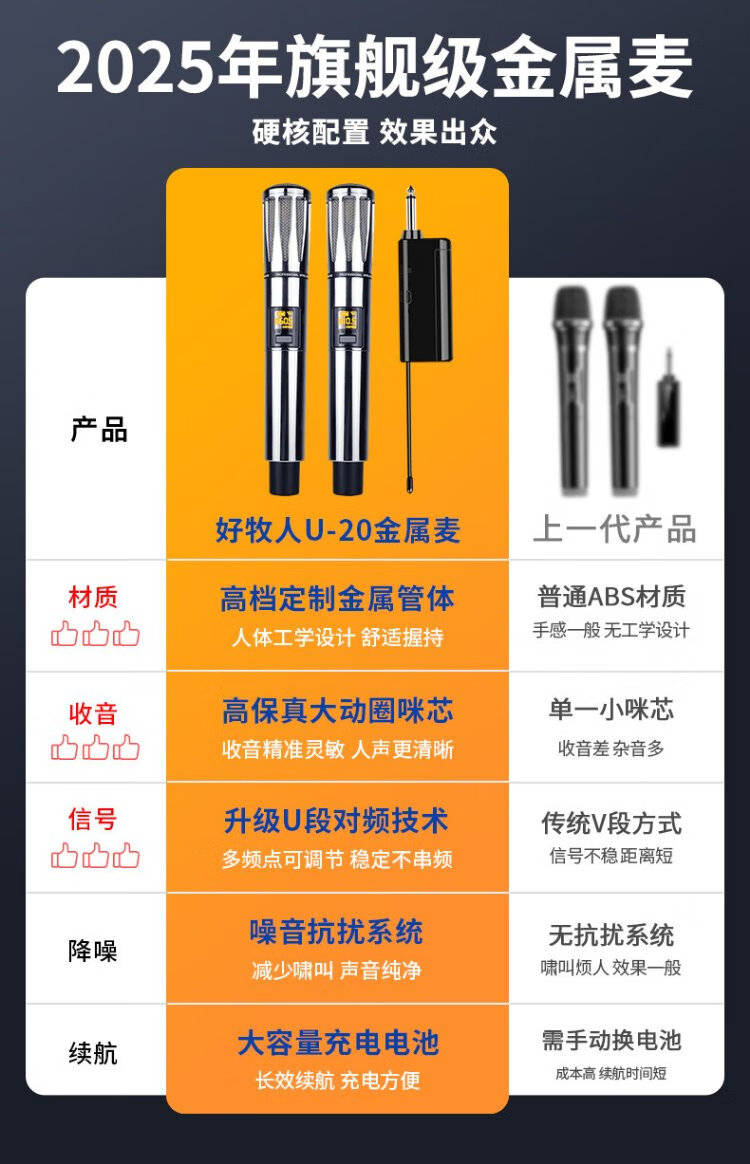 Good Shepherd Microphone Wireless Microphone Home KTV Singing Stage Hosting Conference Speech Outdoor K Song TV Audio Anti-Squealing Metal Charging Professional Universal Universal One-to-Two