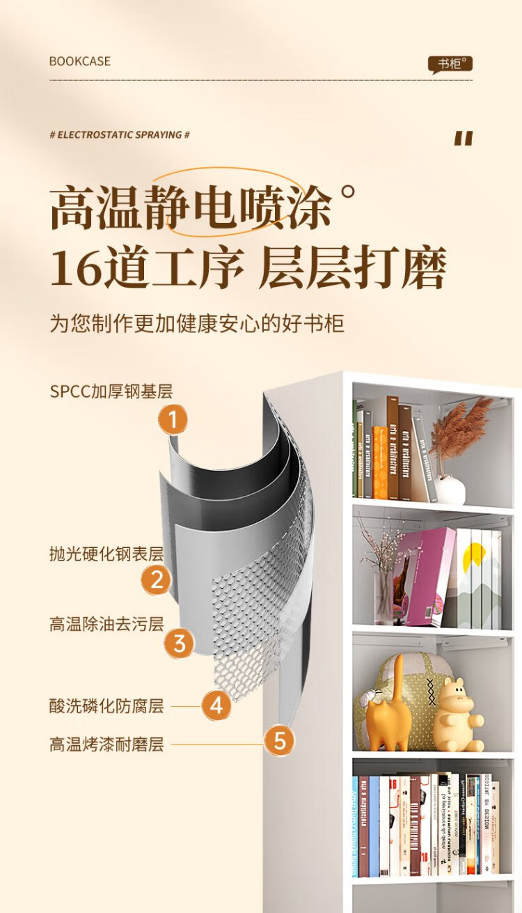 Fukaixiang bookshelf bookcase storage cabinet multi-layer cabinet corner bedside storage cabinet bookshelf floor-to-ceiling all-in-one wall-free installation