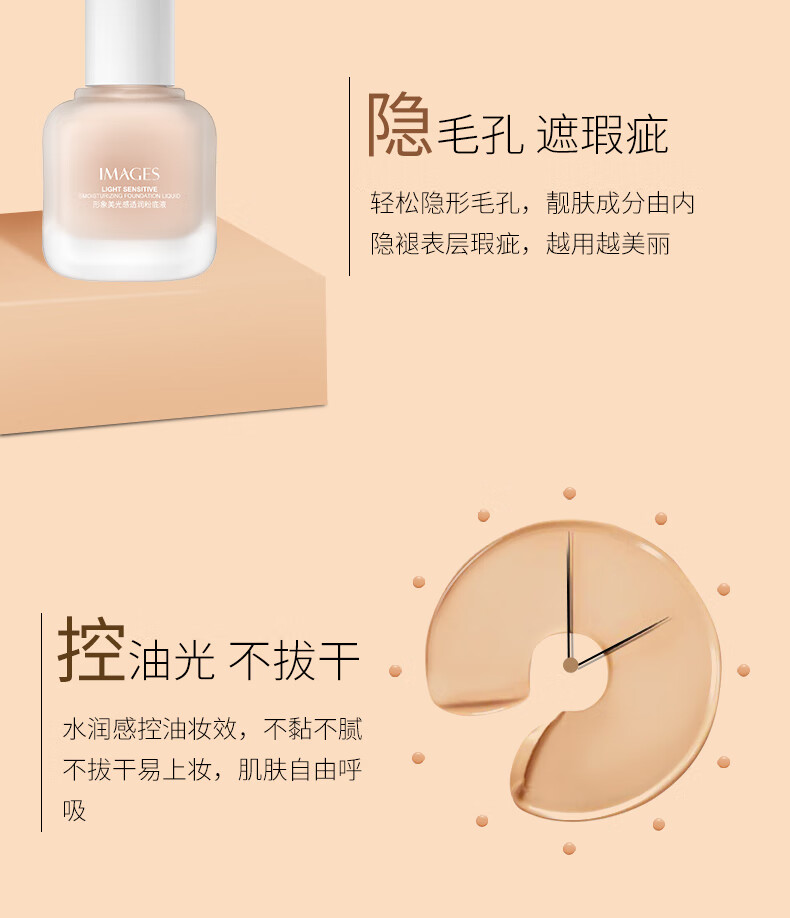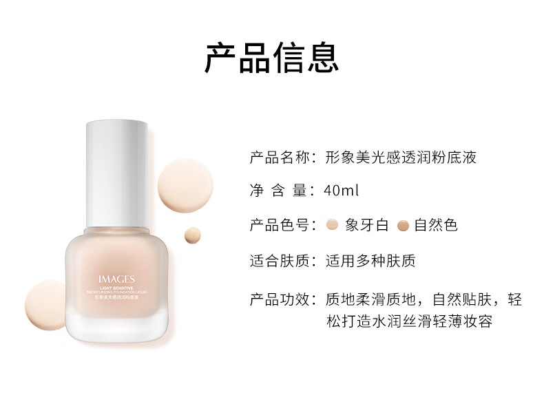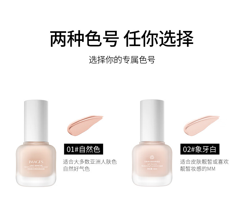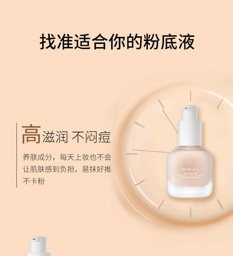 Image-beautiful, translucent liquid foundation that naturally covers blemishes without makeup. It moisturizes, brightens, and evens skin tone. It’s not easy to remove makeup.