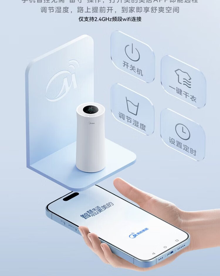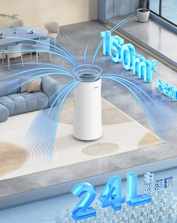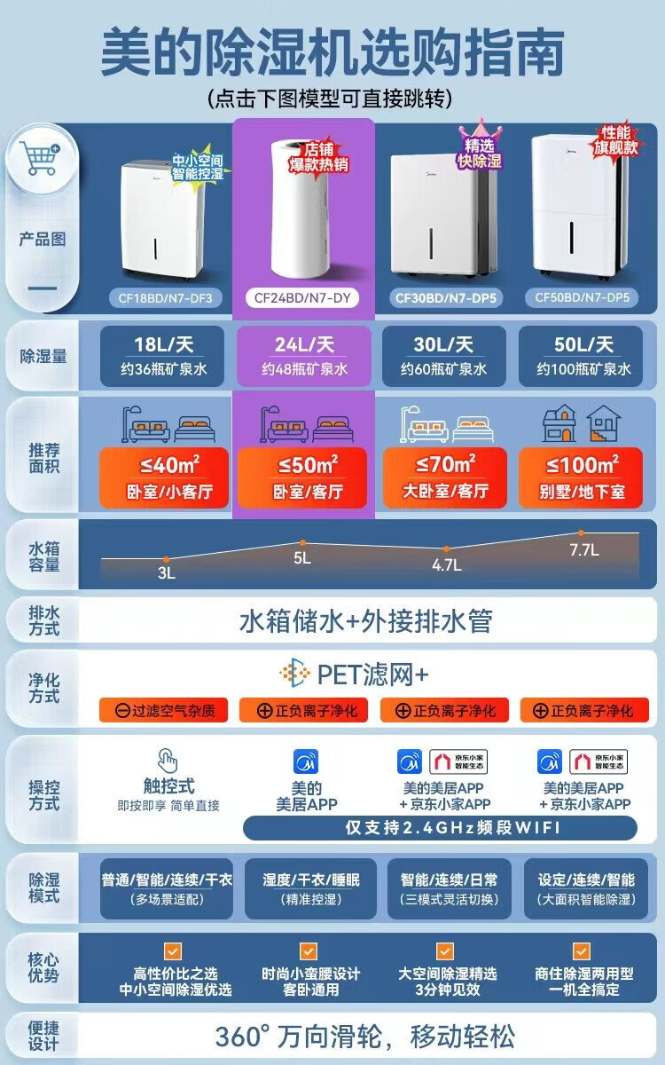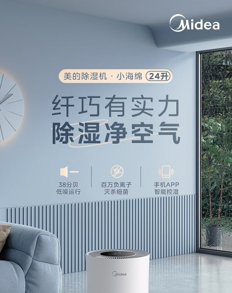 Midea dehumidifier/dehumidifier, small sponge dehumidifier, dehumidification capacity 24 liters/day, WIFI intelligent control, positive and negative ion sterilization, household soft sound dehumidifier CF24BD/N7-DY