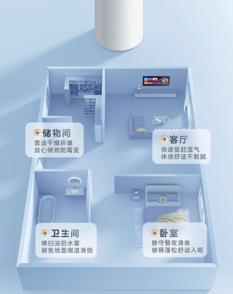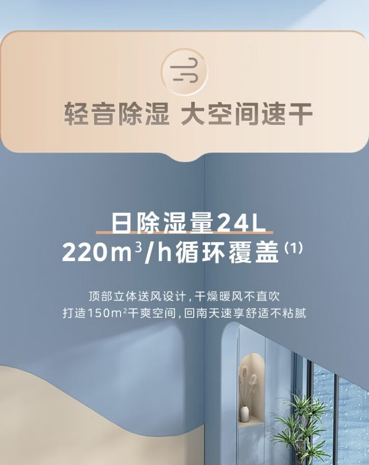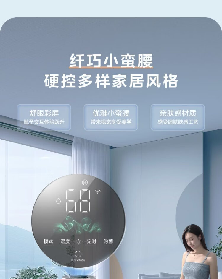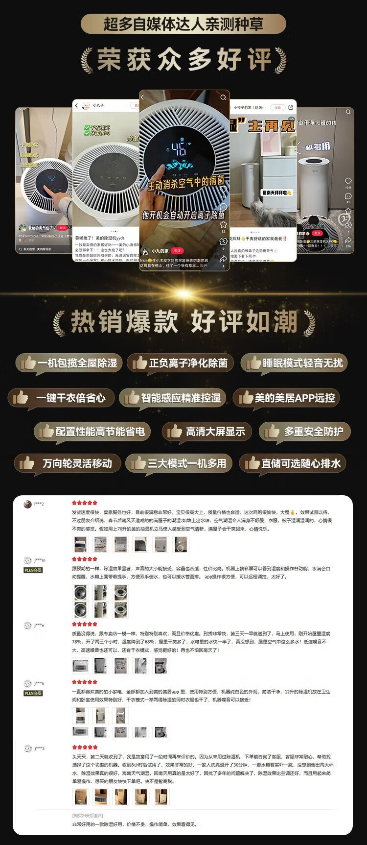 Midea dehumidifier/dehumidifier, small sponge dehumidifier, dehumidification capacity 24 liters/day, WIFI intelligent control, positive and negative ion sterilization, household soft sound dehumidifier CF24BD/N7-DY
