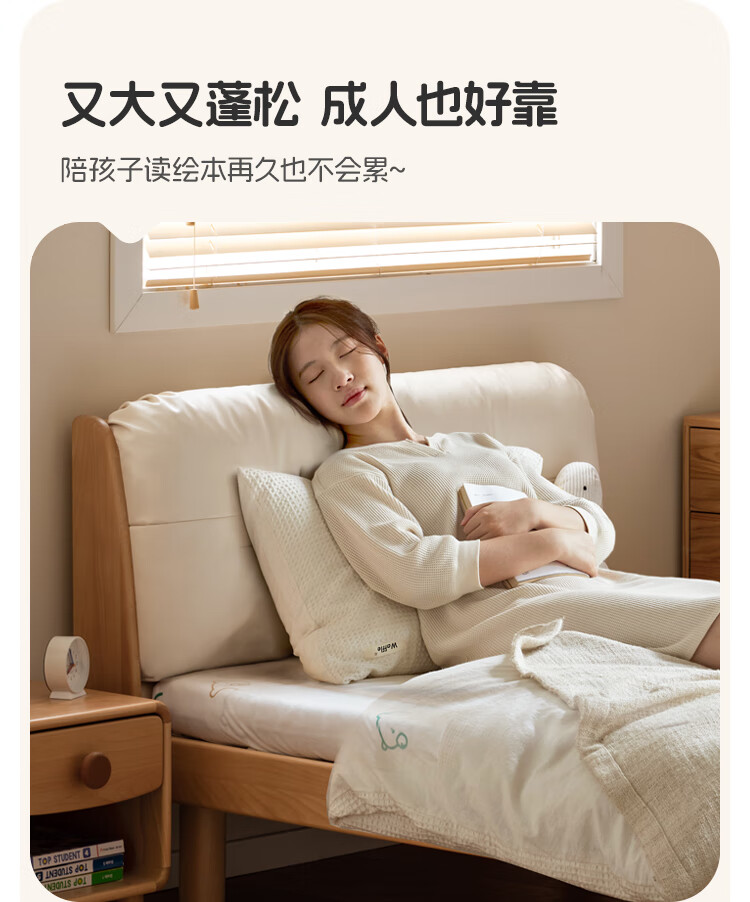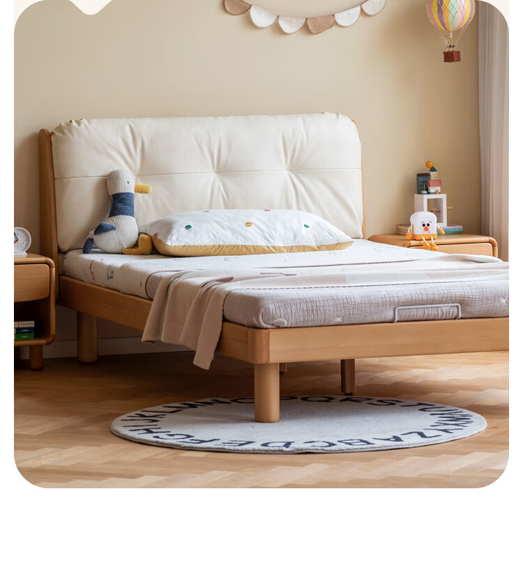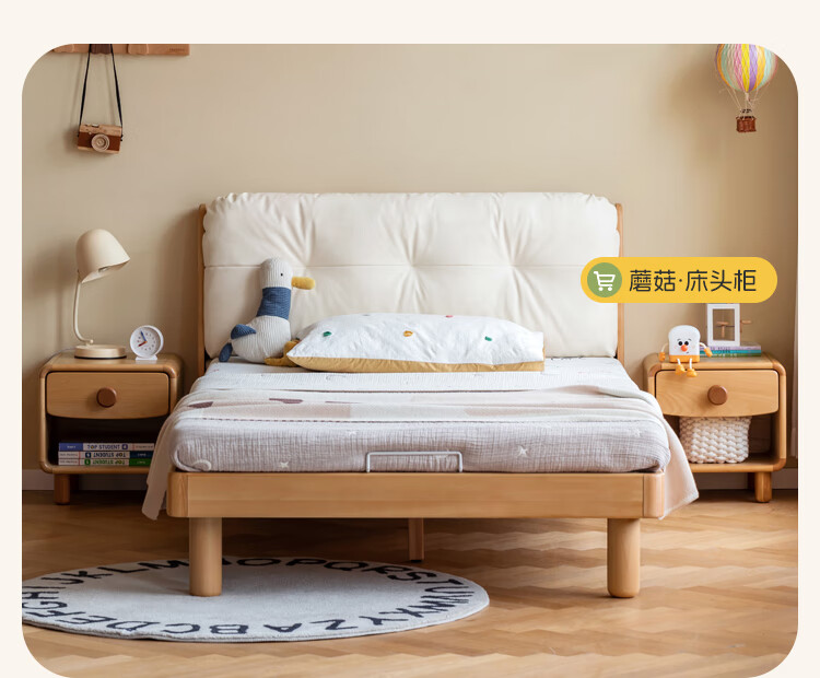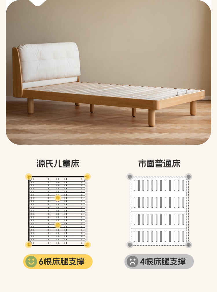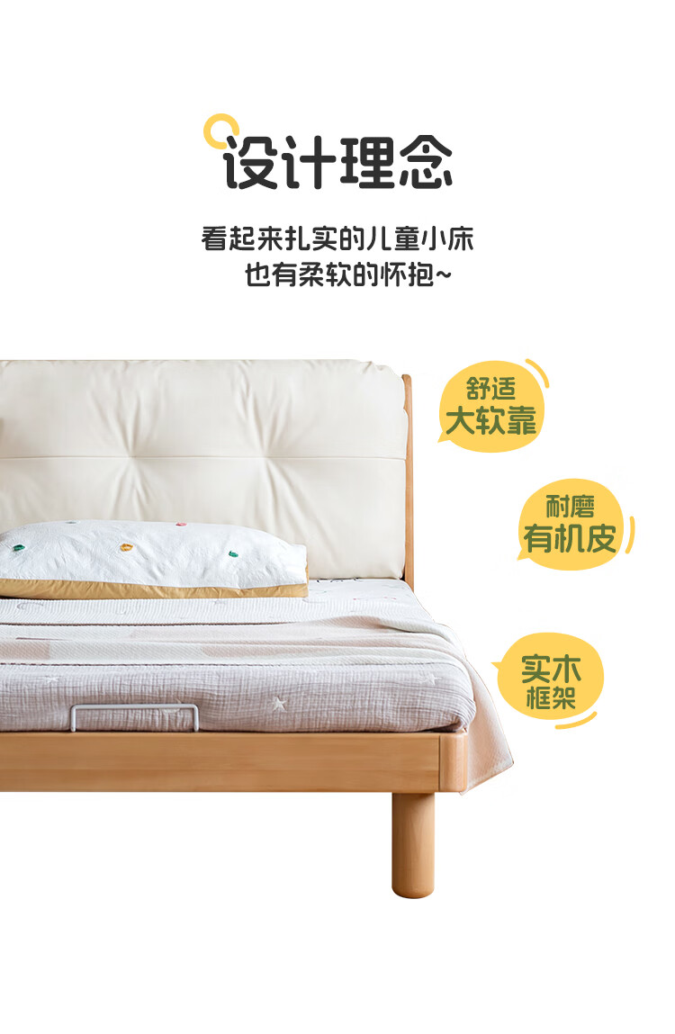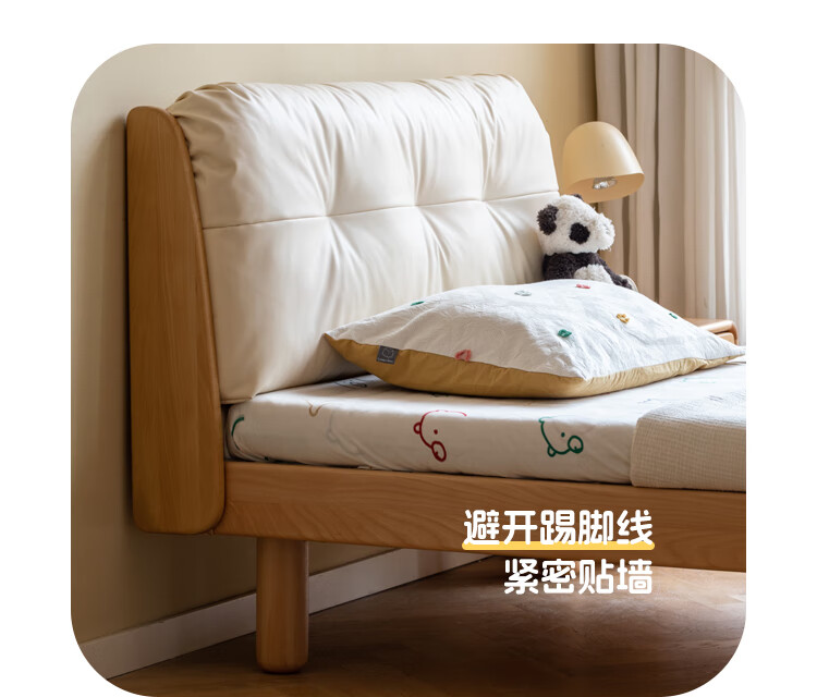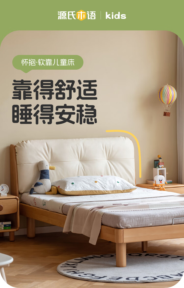 Genji wooden language modern simple children's bed solid wood soft back bed boy and girl single bed bedroom home small bed 1.5 meters