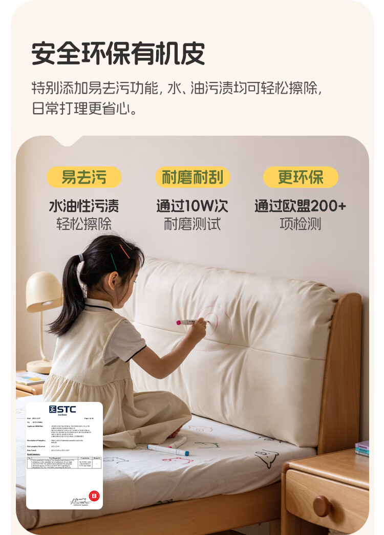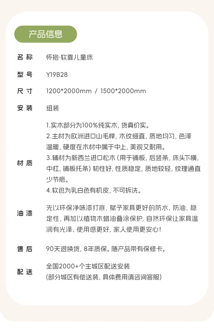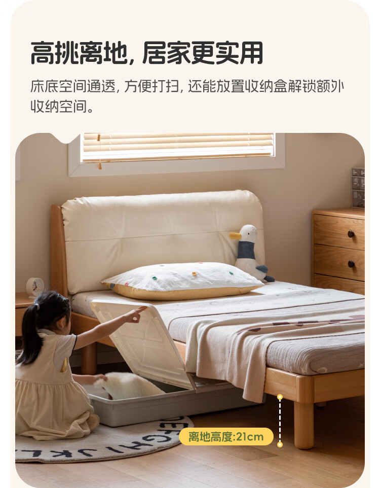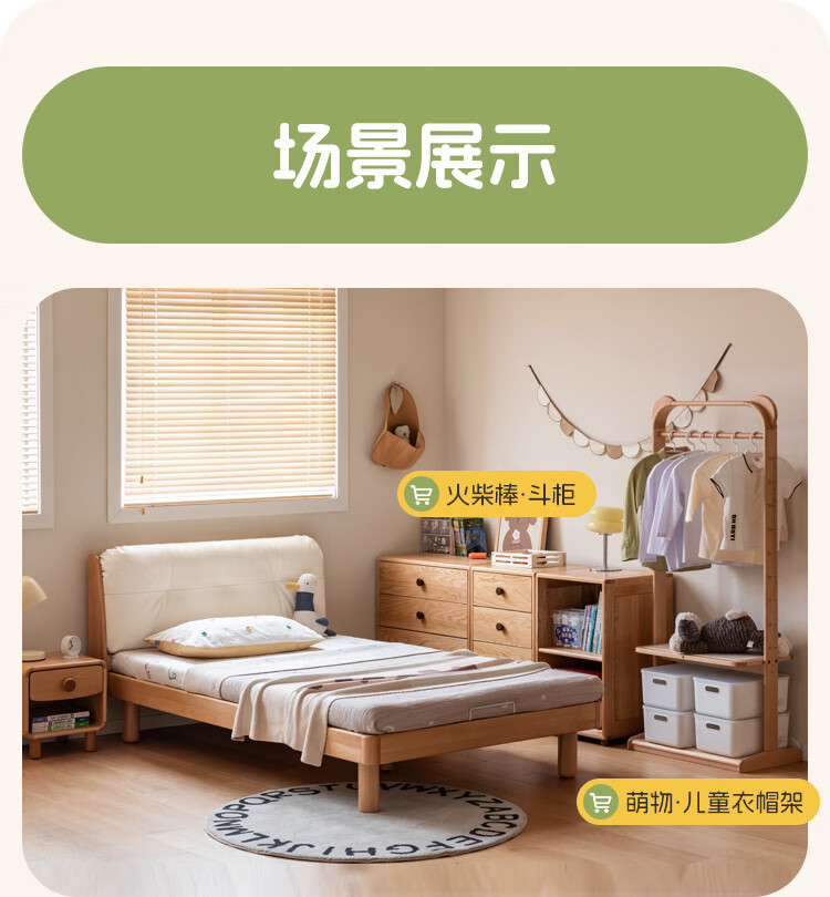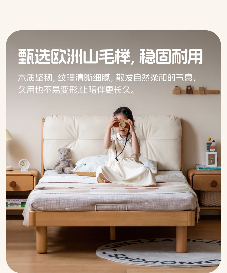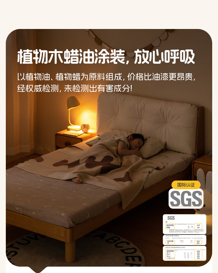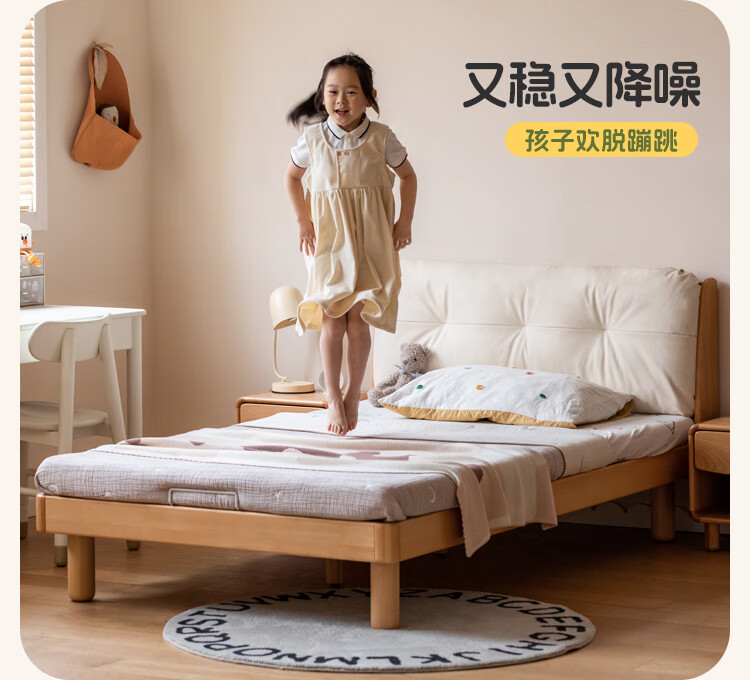Genji wooden language modern simple children's bed solid wood soft back bed boy and girl single bed bedroom home small bed 1.5 meters
