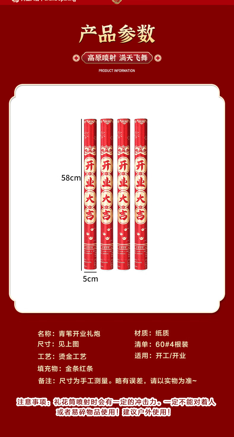 Qingwei Grand Opening Salute Concierge Flower Tube 60#4 Opening Ceremony Glitter Paper Handheld Salute Concierge Flower