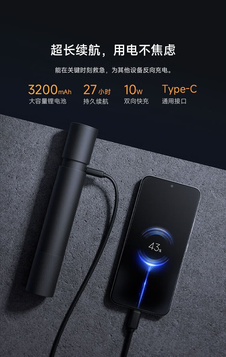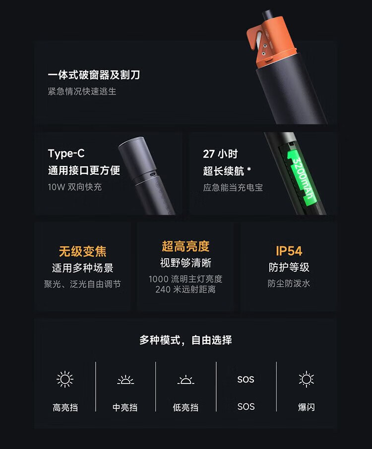Mijia multi-function strong light flashlight suitable for SU7 Xiaomi car strong light flashlight window breaking hammer safety hammer