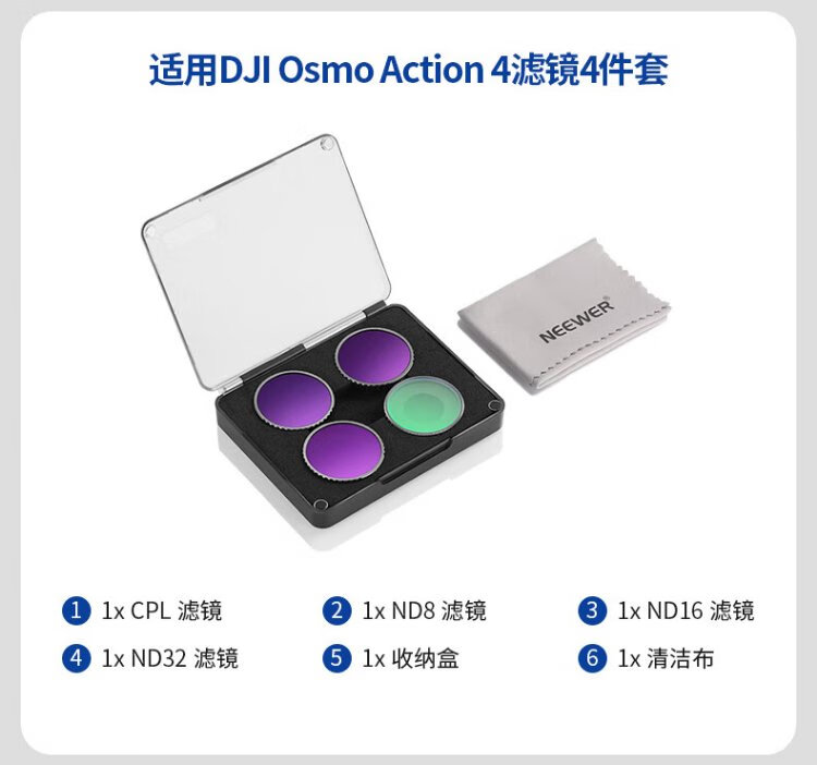 NEEWER is suitable for DJI Action4/5 pro action camera filter 6-piece set CPL/ND8/ND16/ND32/ND64/ND1000 light filter polarizer ND filter accessories