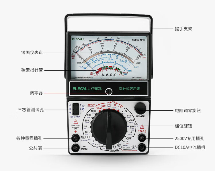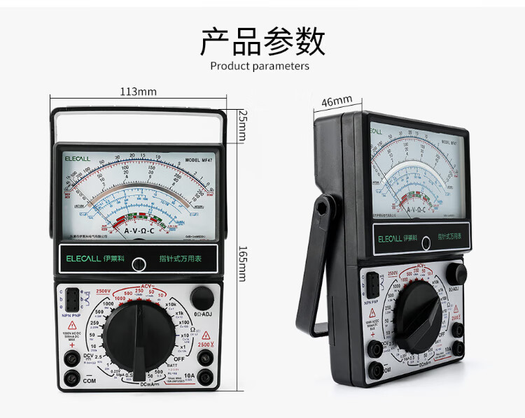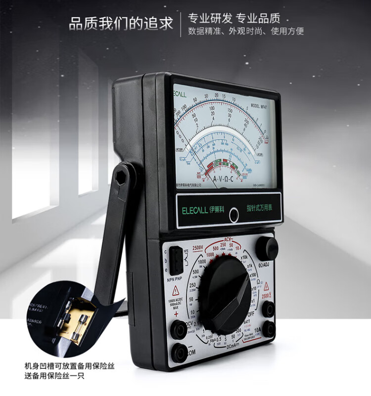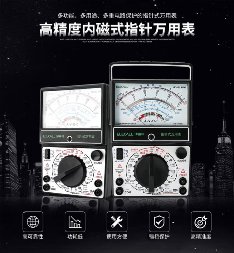 ELECALL pointer multimeter, mechanical watch with internal magnetic multiple circuit protection, high precision MF47 + test pen + watch bag