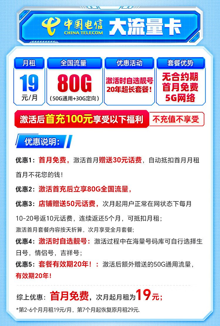 China Telecom traffic card 19 yuan/month National universal super large traffic 5G mobile phone card phone card student star card non-unlimited permanent traffic package