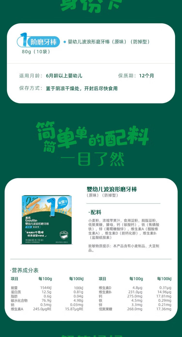 Engnice baby wavy teething stick original flavor baby snacks teething biscuits with rope to prevent falling 80g