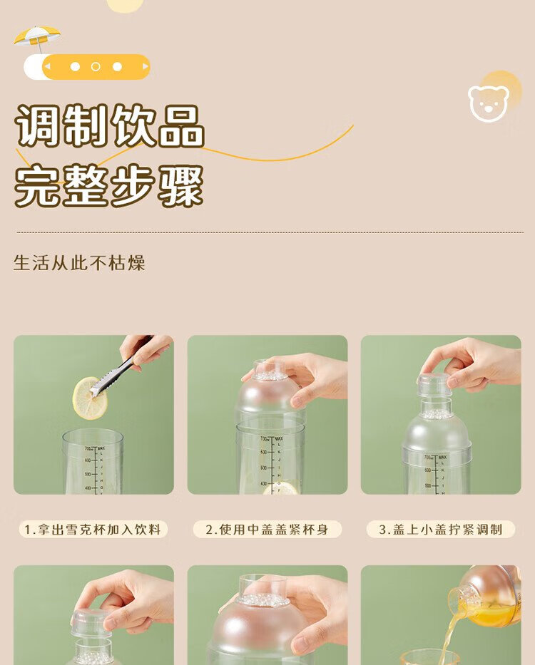 Badger Shake Cup Set Beater Lemon Tea Tool Milk Tea Making Cocktail Mixing Tool 1000ML