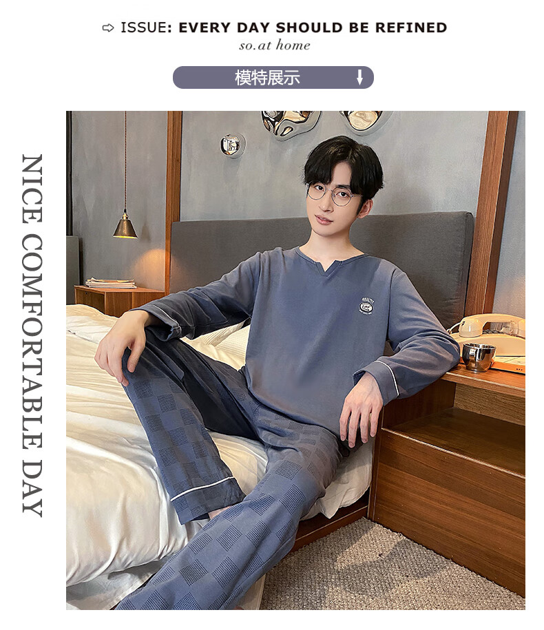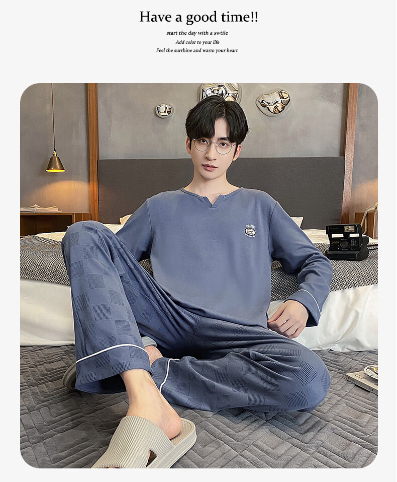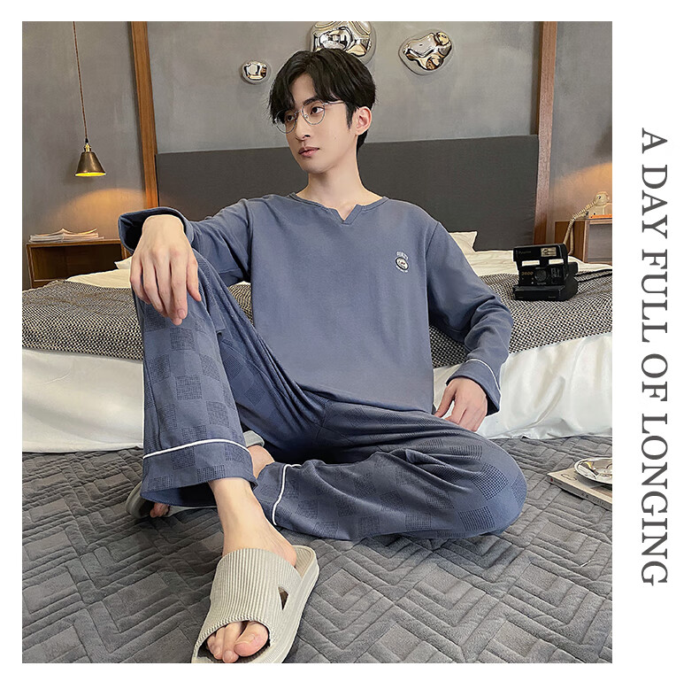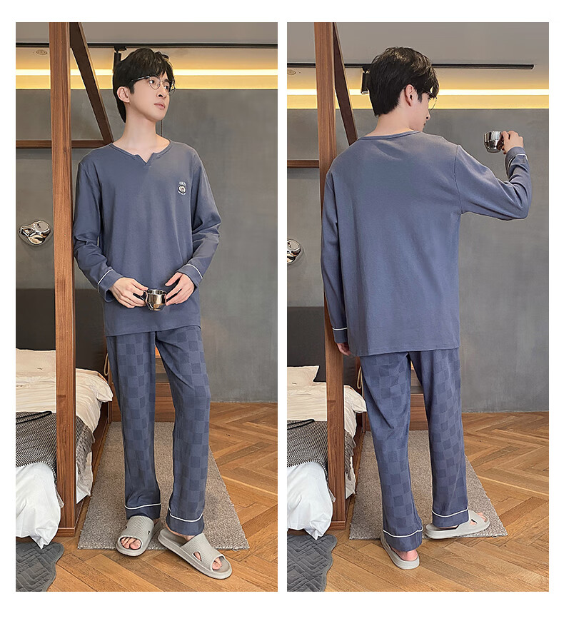 Yu Zhaolin pajamas men's cotton autumn and winter long-sleeved simple casual youth large size can be worn outside all seasons pullover home clothes